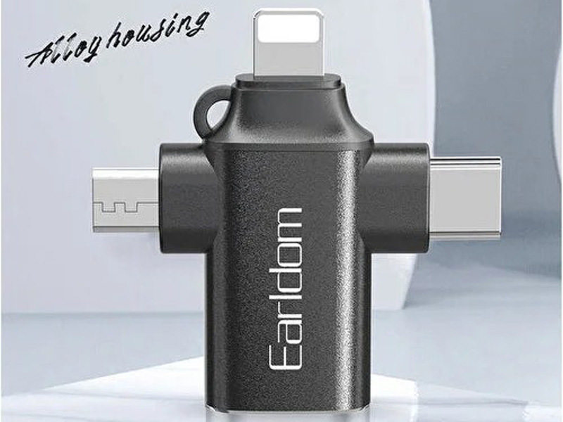 به طور ساده و کوتاه می توان گفت Earldom OT80 یک آداپتور OTG سه در 1 است که به شما امکان می دهد دستگاه های مختلفی از جمله فلش USB، هارد اکسترنال و کیبورد و ماوس را به تلفن همراه یا تبلت خود متصل کنید. همچنین از پورت های Lightning، Type-C و Micro-USB پشتیبانی می کند، بنابراین با طیف گسترده ای از دستگاه ها سازگار است.
