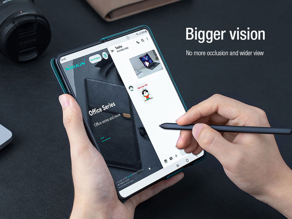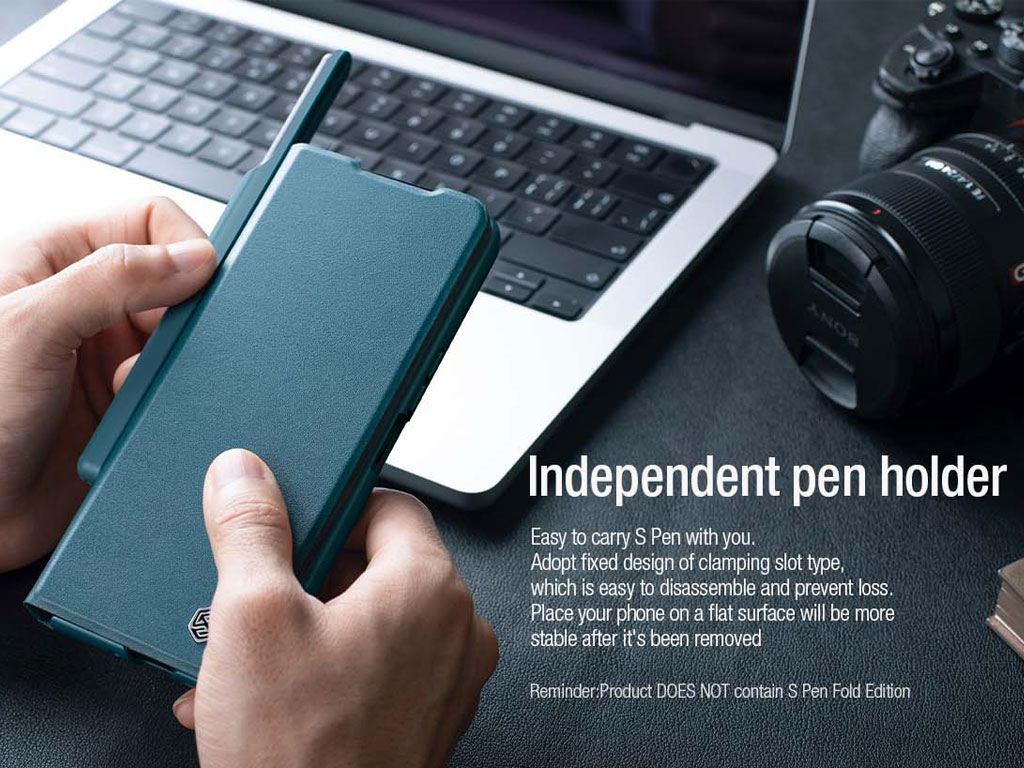 نیلکین برای اینکه مدام در حال گشتن به دنبال قلم لمسی گوشی خود نباشید و همیشه در دسترس باشد یا از گم شدن آن جلوگیری شود جیب کوچکی در طراحی این کاور کتابی گوشی زد فولد 5 سامسونگ گنجانده است.