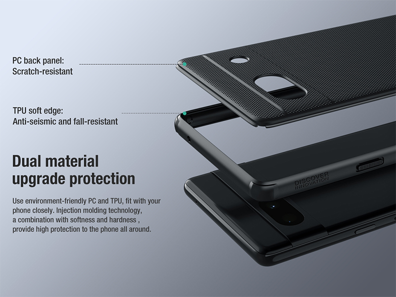 کیس محافظ گوگل پیکسل 7A برند نیلکین از مواد فیبر نایلون و TPU+پلی کربنات نسوز ساخته شده که مقاوم و بادوام است. مواد TPU سازگار با محیط زیست، نرمی و سختی را به خوبی با هم ترکیب کرده و احساس لمس خوب و وزن فوقالعاده کم آن را هنگام دیدن آن تجربه خواهید کرد.