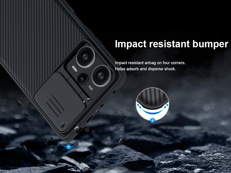همچنین گوشههای گارد Xiaomi Redmi Note 12 turbo/Poco F5 CamShield Pro Case برند نیلکین دارای ایربگهای مقاوم در چهارگوشه قاب است که به خوبی میتواند ضربههای خارجی را پخش و به راحتی دفع کند. بنابراین با خیال راحت میتوانید از این قاب برای گوشی خود استفاده کنید.