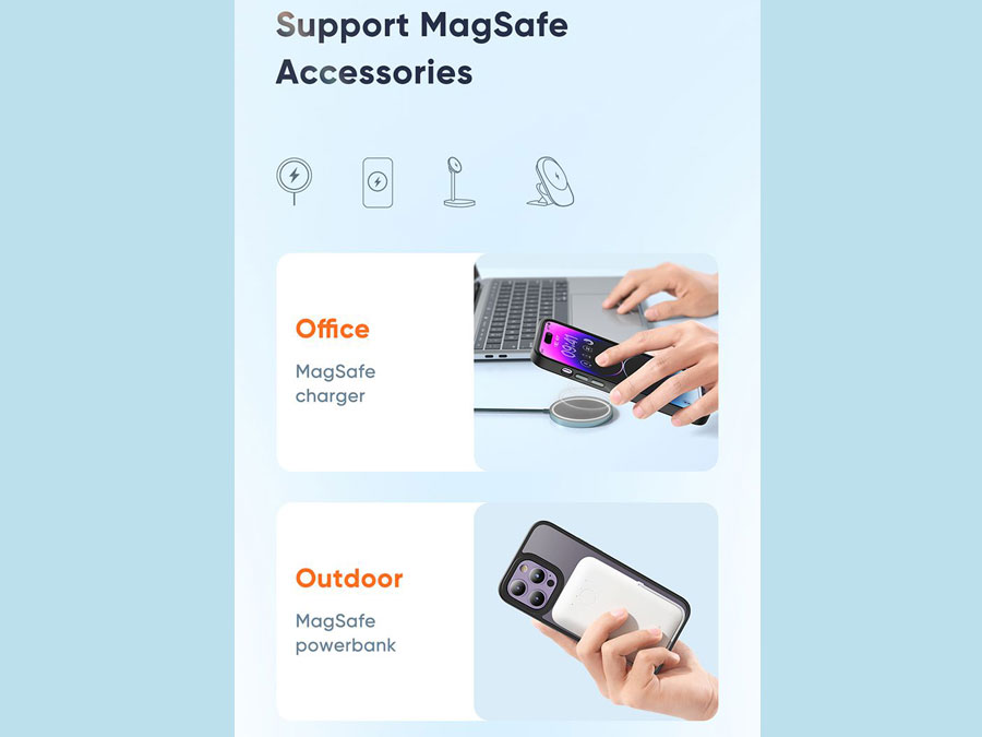 یکی از بزرگ ترین و مهم ترین ویژگی قاب شفاف ایفون 14 پرومکس در این است که آهنرباهایی پر قدرت درون آن قرار داده شده و با استفاده از آن می توان گوشی را با شارژر وایرلس شارژ کرد.