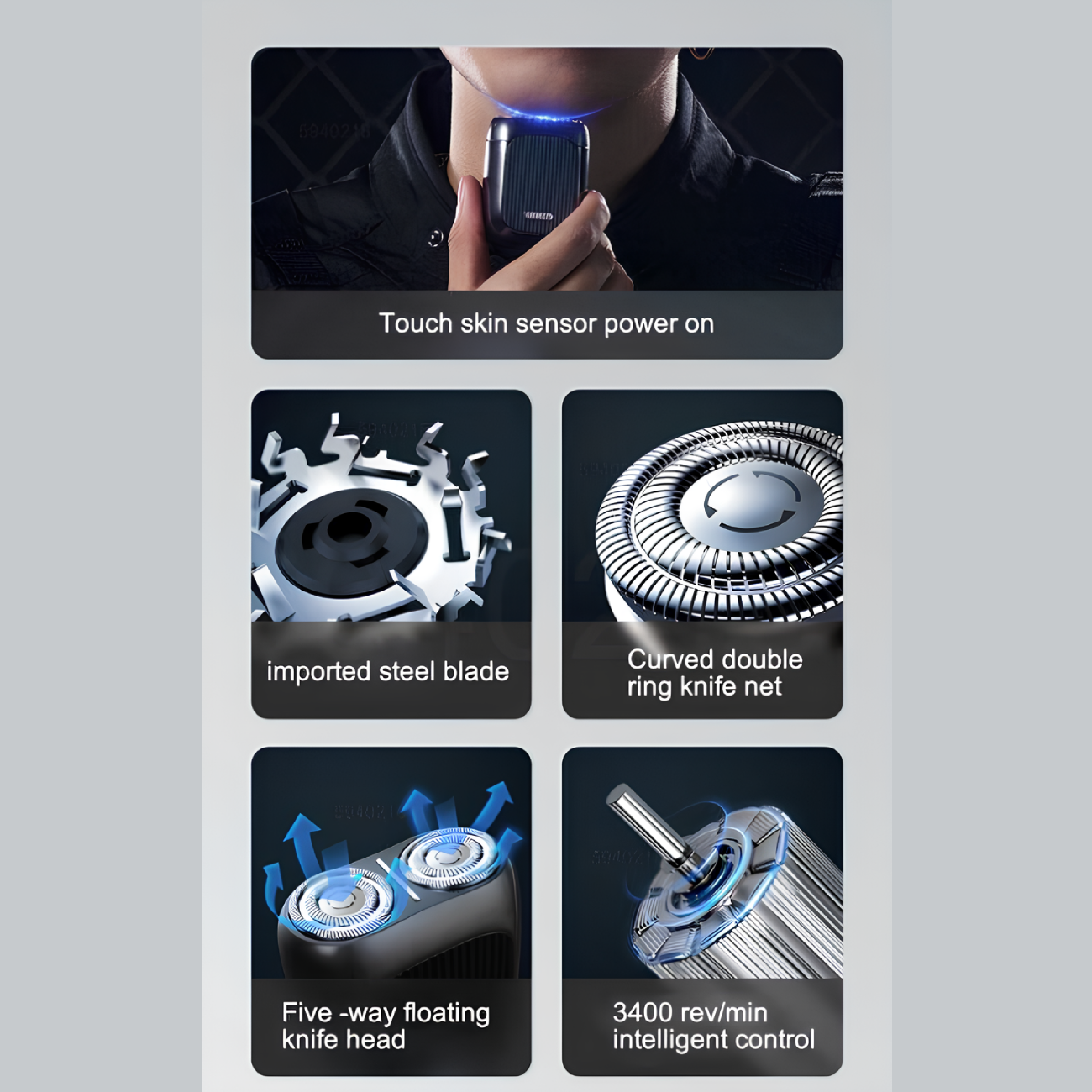 سر شناور پنج جهته این شیور اصلاح به طراحی 360 درجهای آن کمک میکند. این ویژگی به دستگاه اجازه میدهد تا به خوبی با خطوط صورت سازگار شود و اصلاحی دقیق و راحت را فراهم کند. این طراحی به ویژه برای آقایانی که دارای خطوط صورت پیچیده هستند، بسیار مناسب است.