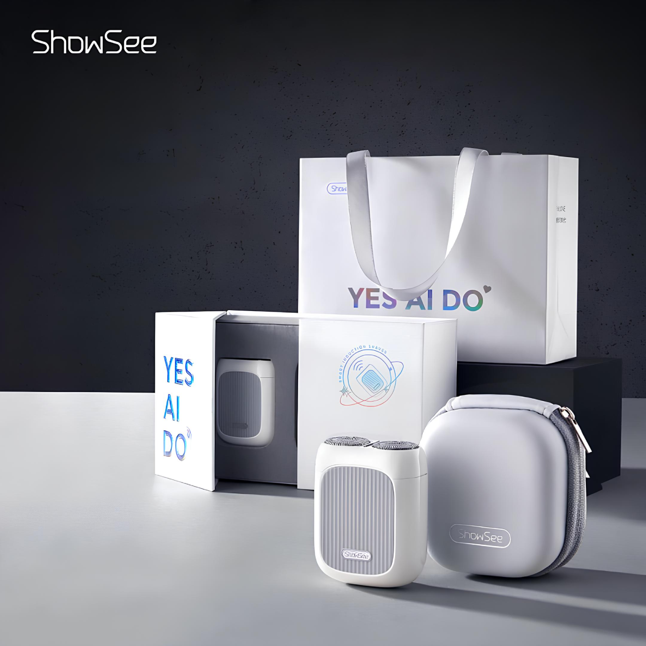 در بستهبندی نفیس شیور اسمارت شیائومی Xiaomi ShowSee Smart Sensor Shaver F201، علاوه بر خود دستگاه، یک کیف حمل، یک کابل شارژ USB-C، یک برس پاکسازی و دفترچه راهنما وجود دارد. این اقلام به شما کمک میکنند تا دستگاه را به راحتی شارژ و استفاده کنید.