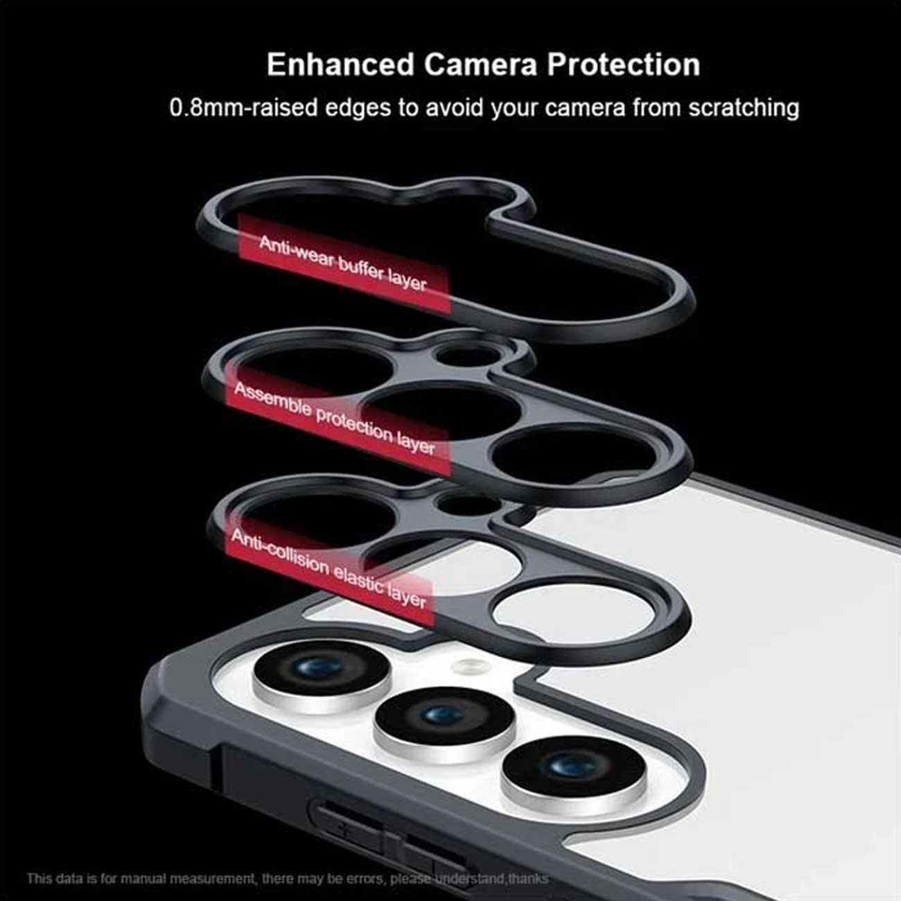 حاشیههای کاور و اطراف دوربین کریستال شیلد سامسونگ گلکسی آ 24 حاشیهای 8 میلیمتری در نظر گرفته شده تا هنگام قرار گرفتن روی سطح فاصلهای ایجاد شود و خراشی در این قسمتها ایجاد نشود.