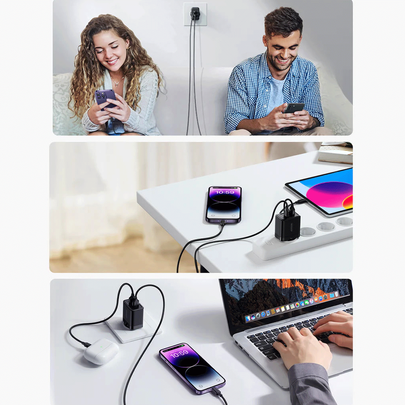 شارژر دیواری وسیلهای کاربردی است که به منظور تأمین انرژی برای دستگاههای الکترونیکی از طریق اتصال به پریز برق طراحی شده است. این نوع شارژرها امروزه به دلیل افزایش استفاده از دستگاههای قابلحمل مانند گوشی هوشمند، تبلت، هدفون بیسیم و لپتاپها بسیار محبوب و رایج شدهاند. شارژرهای دیواری با تبدیل ولتاژ برق متناوب (AC) به ولتاژ مستقیم (DC)، امکان شارژ ایمن دستگاهها را فراهم میکنند و در اندازهها و توانهای مختلفی عرضه میشوند.