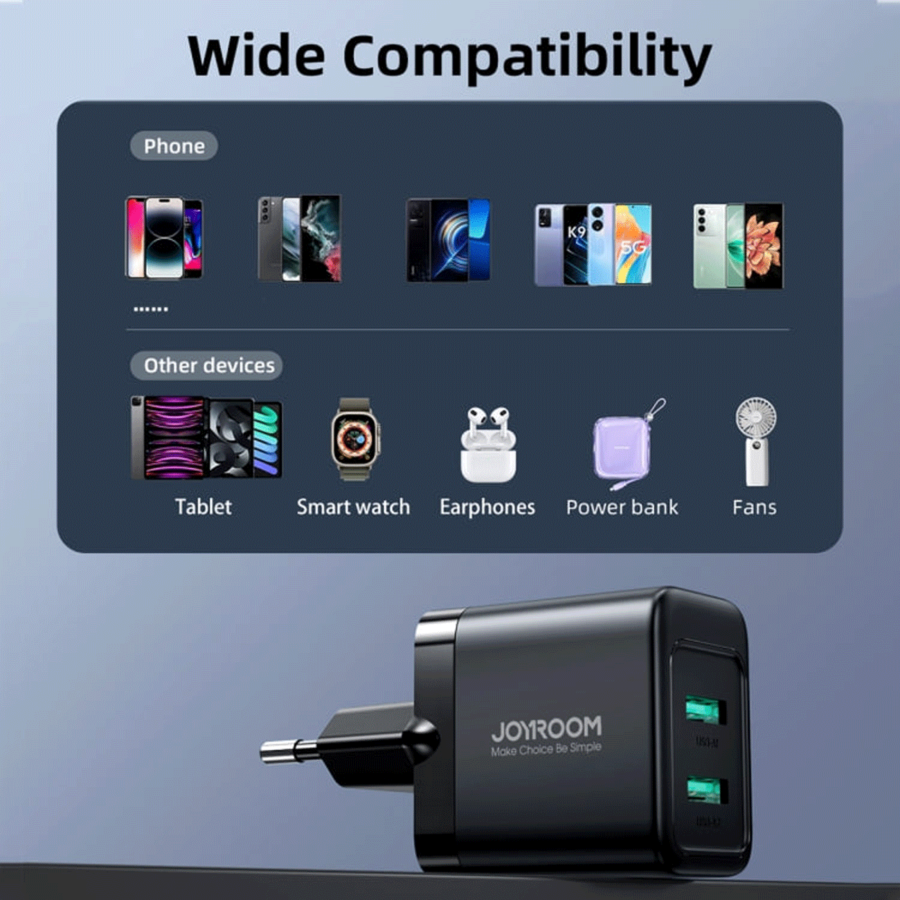 آداپتور JR-TCN01 با دو درگاه USB 2.4A طراحی شده است تا امکان شارژ سریع و همزمان دو دستگاه را فراهم کند. هر یک از درگاهها قادر به ارائه جریان ۲.۴ آمپر است که برای شارژ گوشیها، تبلتها و سایر دستگاههای الکترونیکی بهطور همزمان بسیار مناسب است.