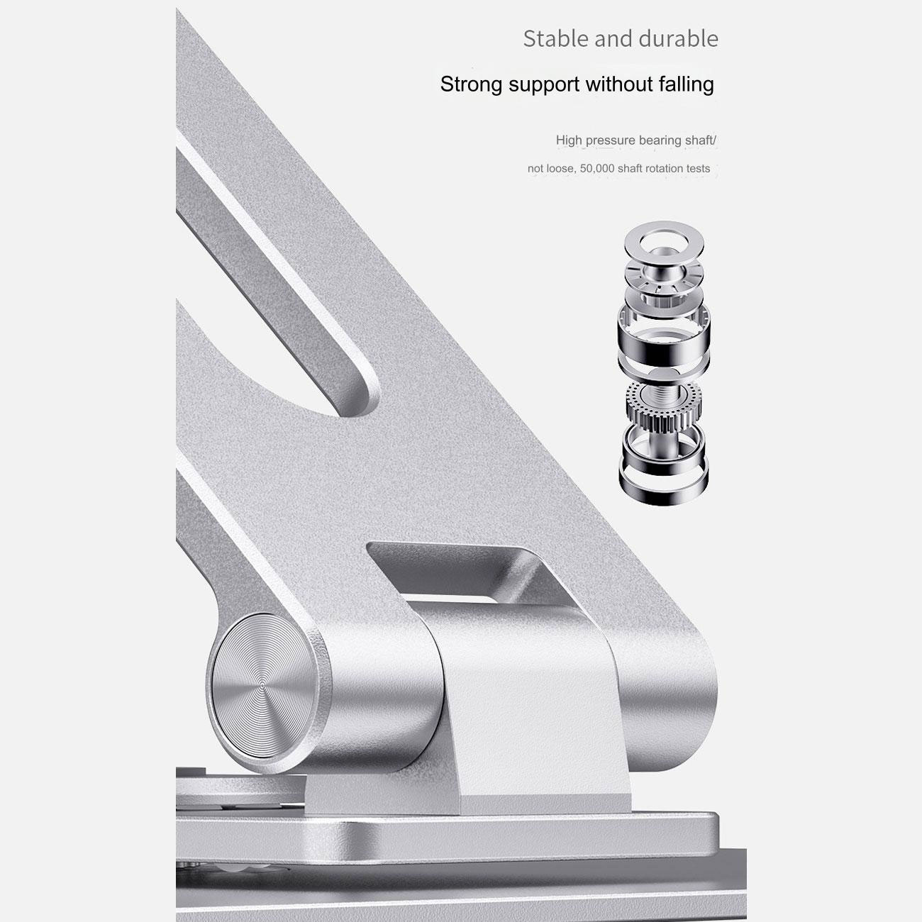 پایه لپ تاپ BONERUY ساخته شده از آلیاژ آلومینیوم بوده و از بدنهای بسیار مقاوم و ضداکسیداسیون برخوردار است و میتواند وزن بالایی را تحمل کند. در بخش زیری آن هم لایهای از سیلیکون به کار رفته است تا بدون هیچگونه لغزشی در جای خود ثابت بماند و حین کار با لپتاپ تکان نخورد. همچنین بخشهایی از محل قرار گیری دستگاه هم با سیلیکون پوشانده شده تا آسیبی به بدنه دستگاه شما نرسد.