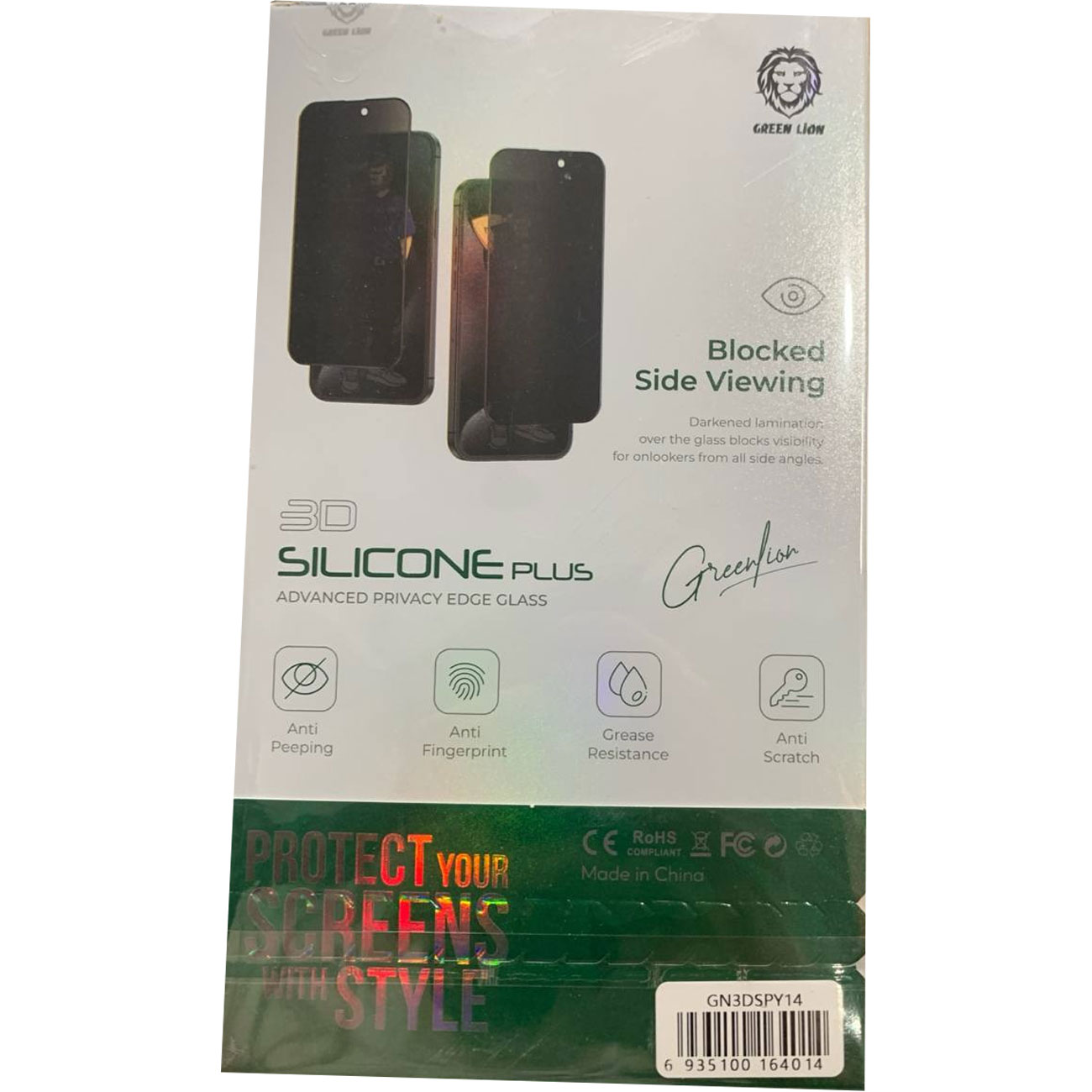 گلس حریم شخصی آیفون 14، 13 و 13 پرو سه بعدی گرین GN3DSPY14