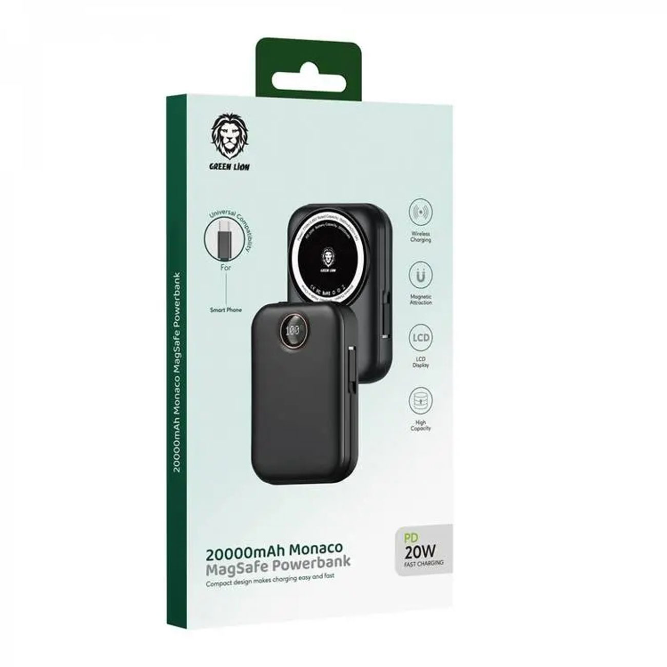 پاوربانک وایرلس Green Lion Monaco Magsafe 20000mah Power Bank GNMPB20KTCBK دارای یک نمایشگر دیجیتال LCD است که میزان شارژ را به شما نشان میدهد.