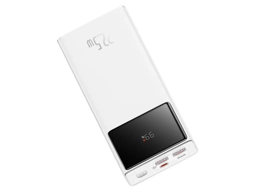 شارژر همراه بیسوس 4 درگاه مختلف دارد که عبارتاند از دو درگاه خروجی USB، یک درگاه ورودی Micro و یک درگاه Type-C که هم ورودی است و هم خروجی. در کنار این پورتها دکمهی خاموش و روشن پاوربانک دیده میشود.
