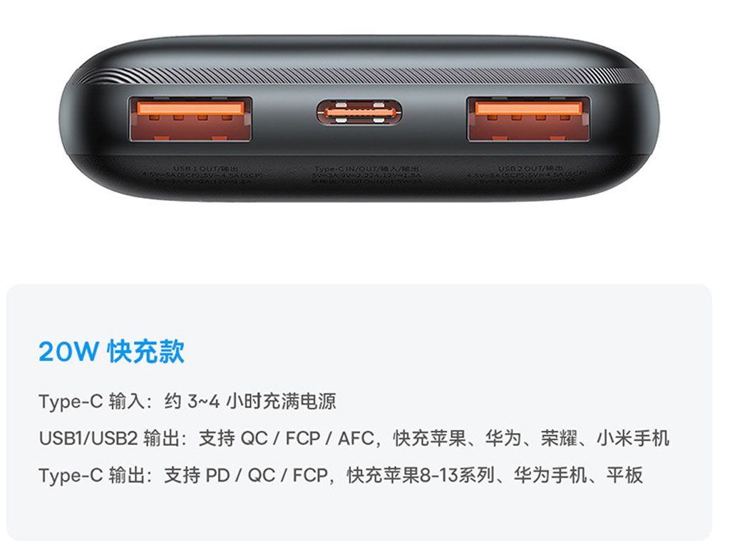 Type-C Output: 5V/3A; 9V/2.22A; 12V/1.5A