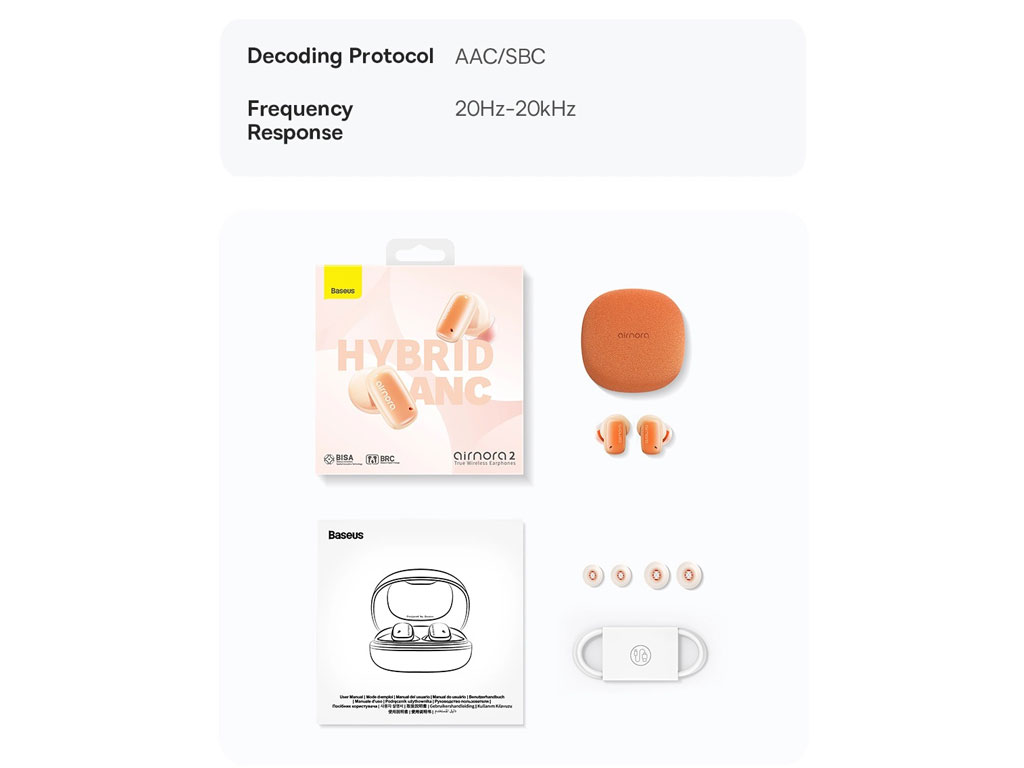 Baseus Air Nora 2 مجهز به فناوری ANC هیبریدی تغذیه دوگانه است که از حداکثر عمق حذف نویز 42 دسیبل پشتیبانی میکند. حالت ANC هدفونها به طور پیش فرض روشن است و مناسب استفاده در مکانهای شلوغ مانند مترو و اتوبوس است و به خوبی صداهای اضافه را حذف میکند. درایورهای 10 میلی متری دارد و محدوده فرکانس آن 20 هرتز - 20 کیلوهرتز است. گوشیها قادر به تجزیه و تحلیل هر صدای آهنگ در جای خود هستند.