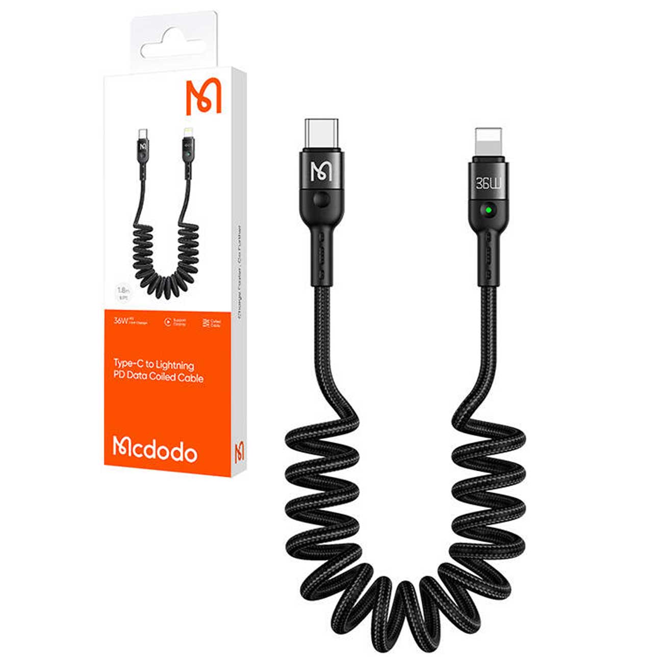 کابل تایپ سی به لایتنینگ 36 واتی 1.8 متری با طراحی فنری مک دودو CA-1960