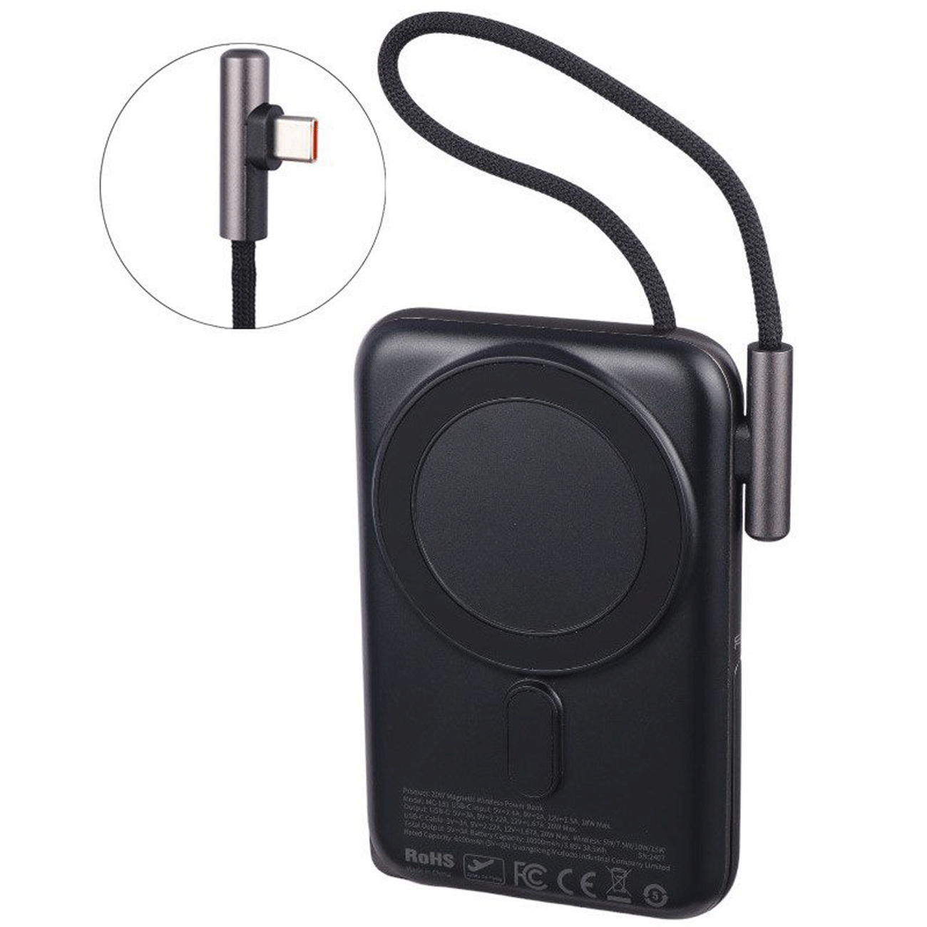 | جریان خروجی | Type C Output: 5V⎓3A, 9V⎓2.22A, 12V⎓1.67A, 20W MAX,Type C CABLE: 5V/3A- 9V/2.22A- 12V/1.67A 20W MAX,Wireless Output: 15W / 10W / 7.5W / 5W |