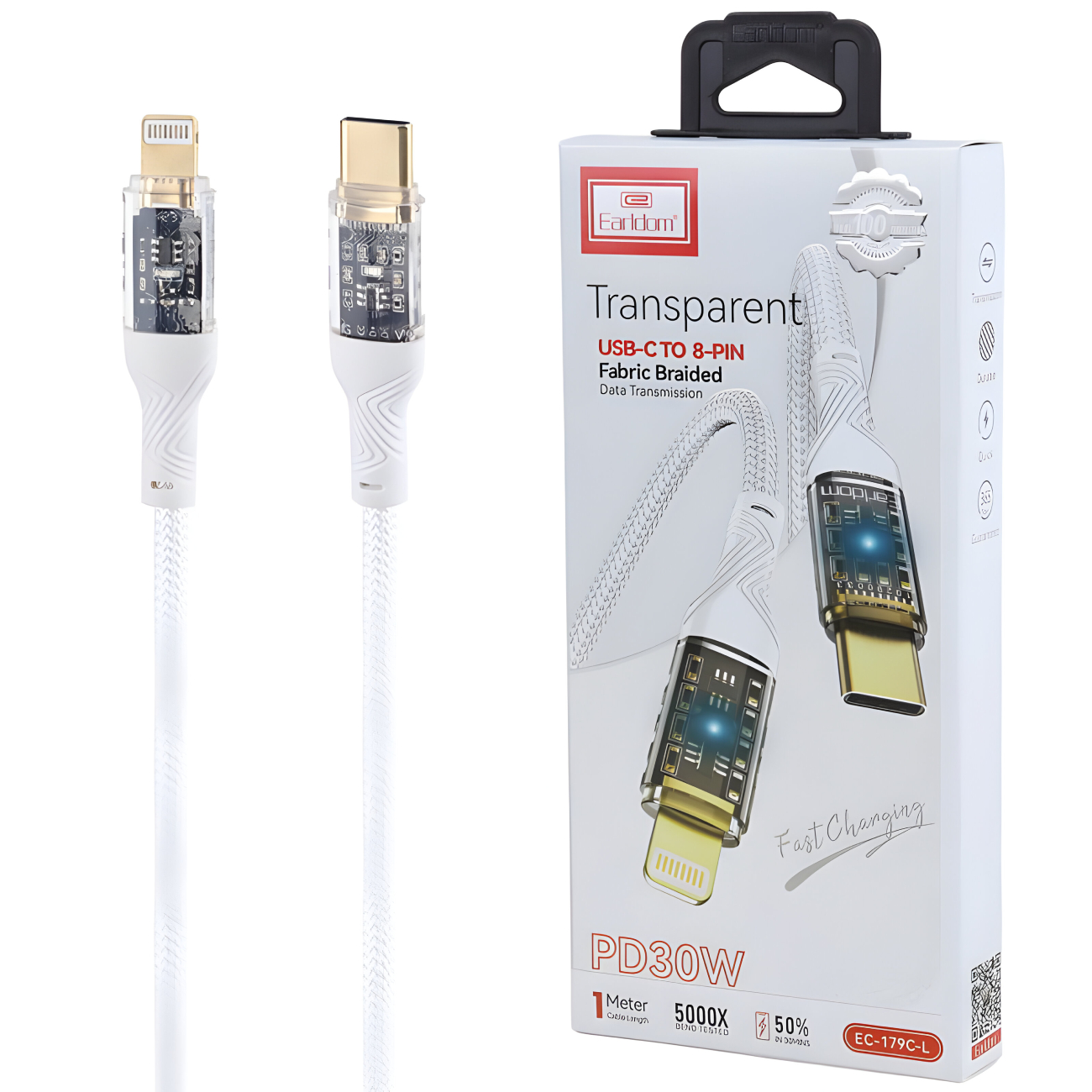 در دنیای امروزی پر از فناوری و ارتباطات، استفاده از کابل شارژ با کیفیت بسیار حیاتی است. یکی از شرکتهای پیشرو در این صنعت، شرکت Earldom میباشد که با معرفی کابلهای با کیفیت و عملکرد بالا، توانسته است جای خود را در بازار بهخوبی تثبیت کند. یکی از محصولات این شرکت، کابل انتقال داده و شارژ سریع با روکش الیاف بافته شده با نام EC-179C-L Transparent Fabric Braided میباشد. این کابل شفاف با طول 1 متر و رابطهای Type-C و Lightning، امکان انتقال داده و شارژ سریع با توان 30 وات را فراهم میکند.
