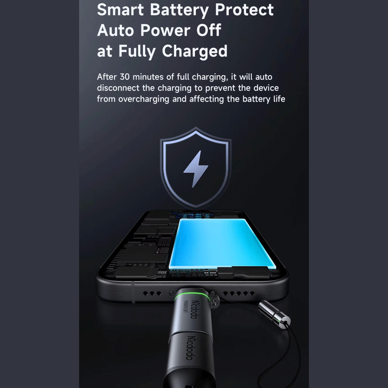 مبدل مک دودو با طراحی یک چراغ LED سبز رنگ قادر است وضعیت شارژ را به شما نمایش دهد؛ این چراغ اگر روشن باشد نشان دهنده این است که دستگاه در حال شارژ است، اگر در حالت تنفس باشد به این معناست که در حال شارژ سریع است و وقتی خاموش شود نشانگر فول شارژ شدن دستگاه است.