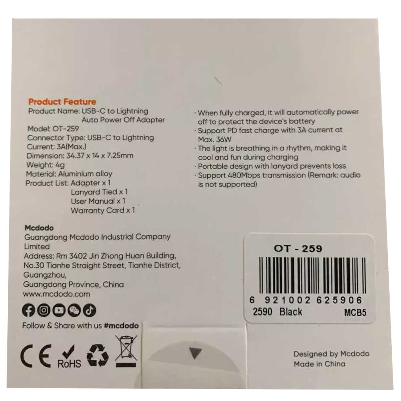 مبدل اوتیجی آیفون تایپ سی به لایتنینگ با قابلیت قطع خودکار شارژ مک دودو OT-259