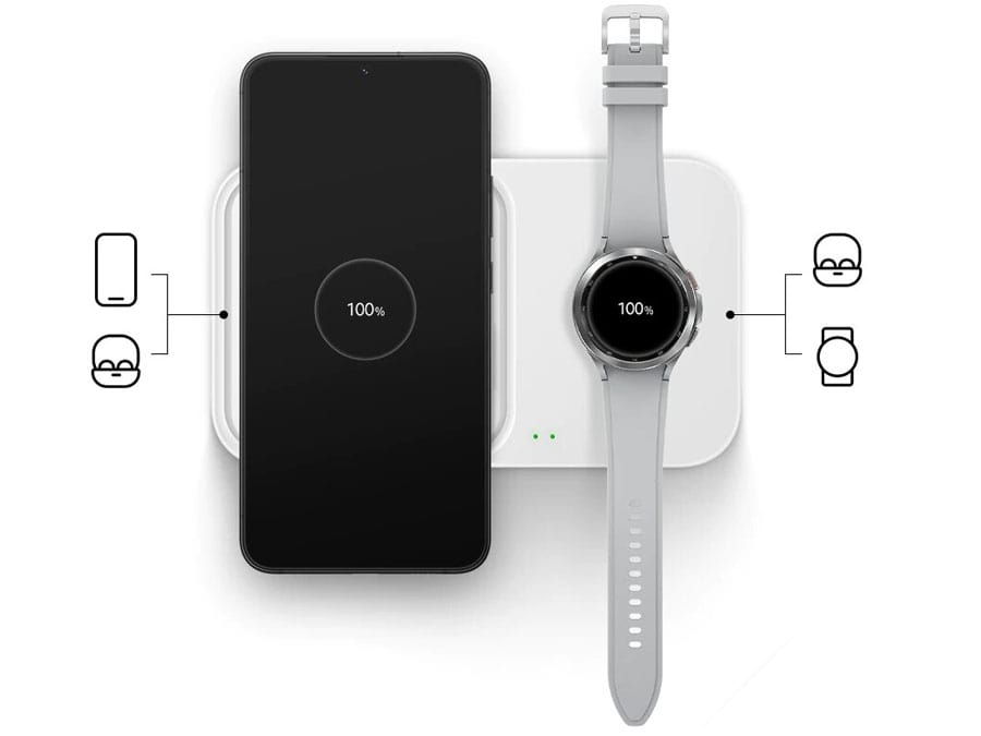 شارژرها از عومل اصلی در جلوگیری از رسیدن آسیب به باتری موبایل هستند و از کوتاه شدن عمر آنها جلوگیری میکنند؛ بنابراین با توجه به قیمتهای سرسامآور موبایل استفاده از لوازمهای جانبی گوشیهای همراه امری ضروری است و از متحمل شدن هزینههای اضافه جلوگیری خواهد کرد. کمپانی سامسونگ هم که شرکتی بسیار مطرح در تولید انواع لوازمهای الکتریکی و دیجیتال است همیشه سعی کرده بهترینها را در اختیار کاربران خود قرار دهد و رضایت مشتریان را جلب کند؛ این بار هم با تولید شارژر اصلی 15 وات سامسونگ Samsung Wireless Charger Duo EP-P5400 یک شارژر کاملا اورجینال را روانه بازار کرده است.
