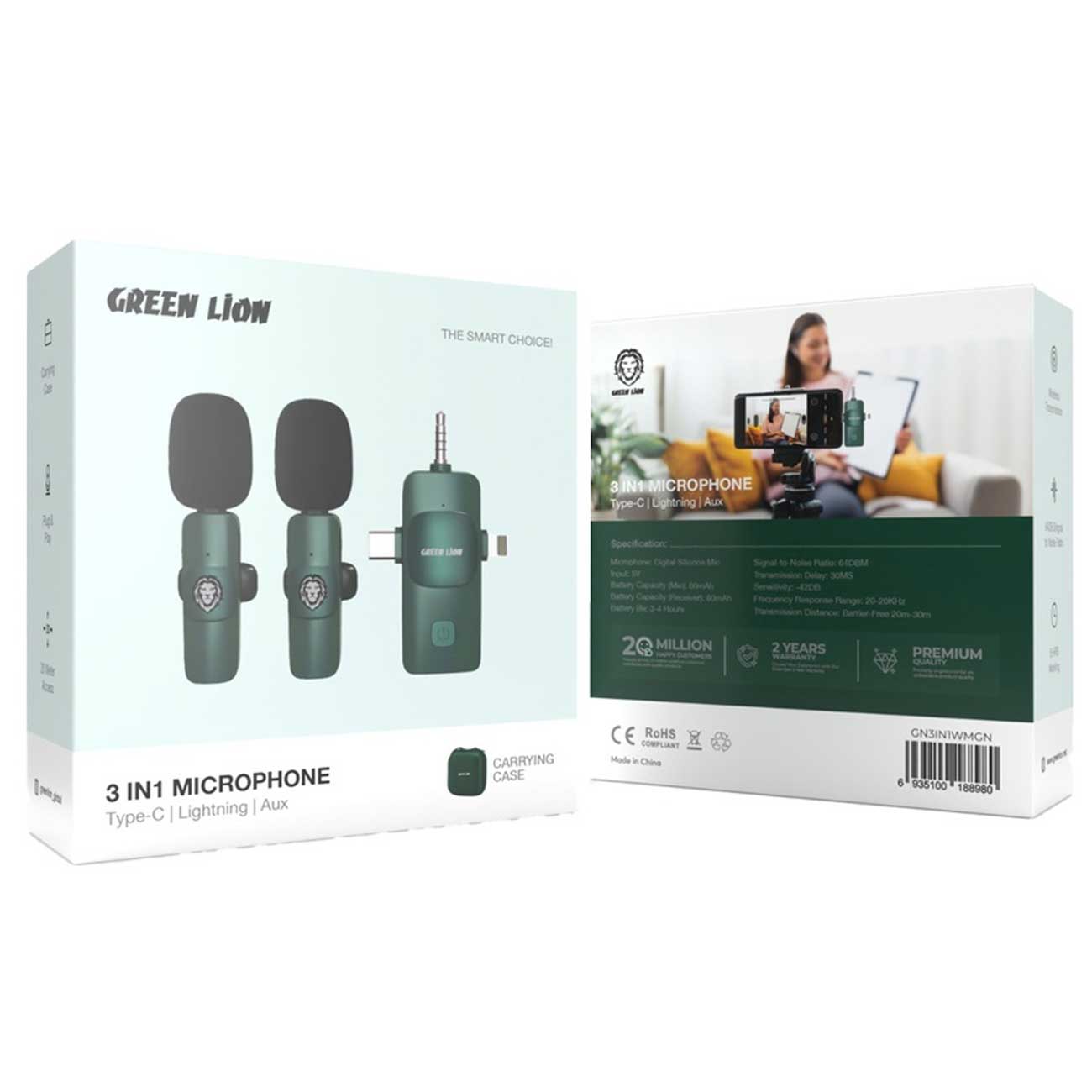 میکروفون یقه ای وایرلس گرین مدل GN3IN1WMGN با سازگاری گسترده