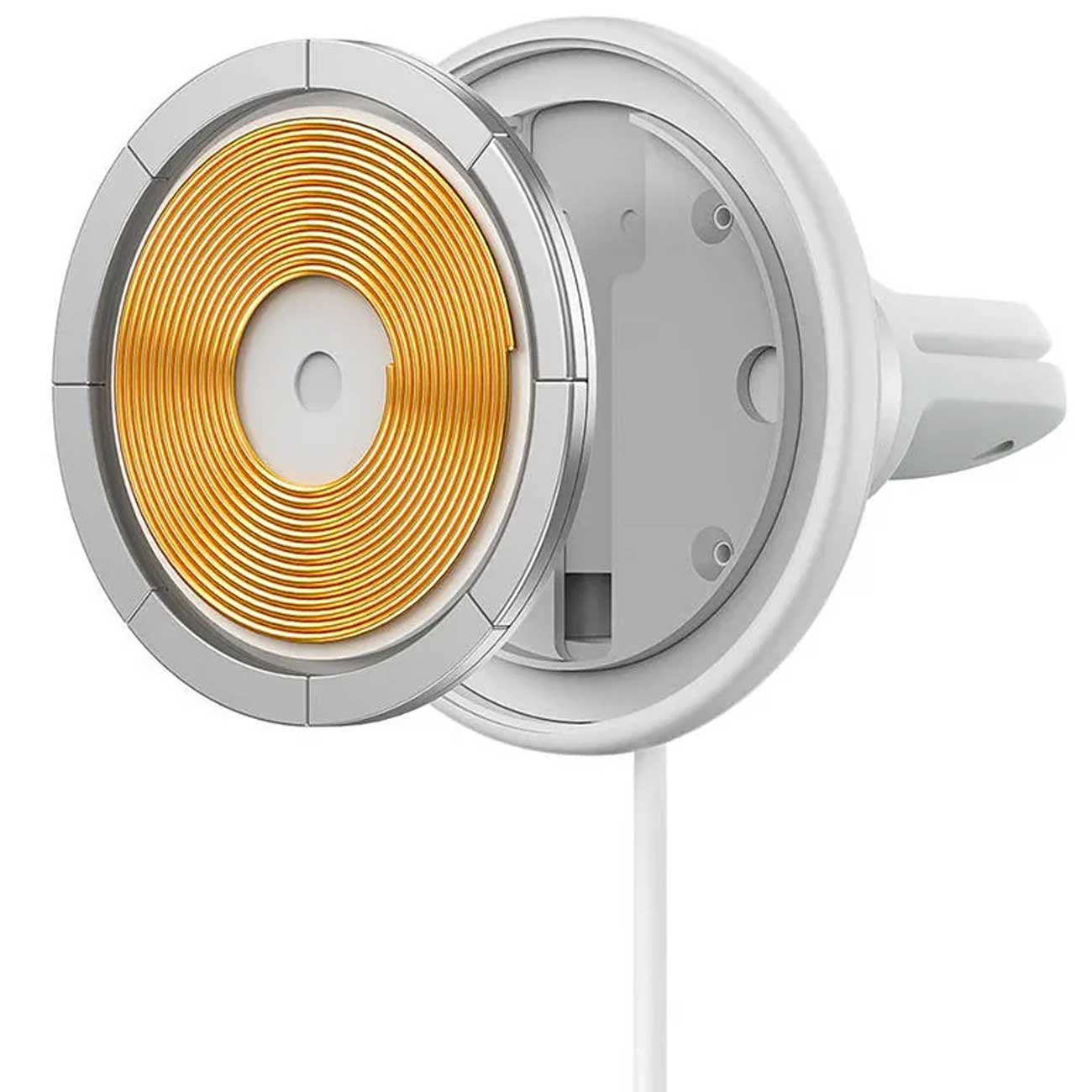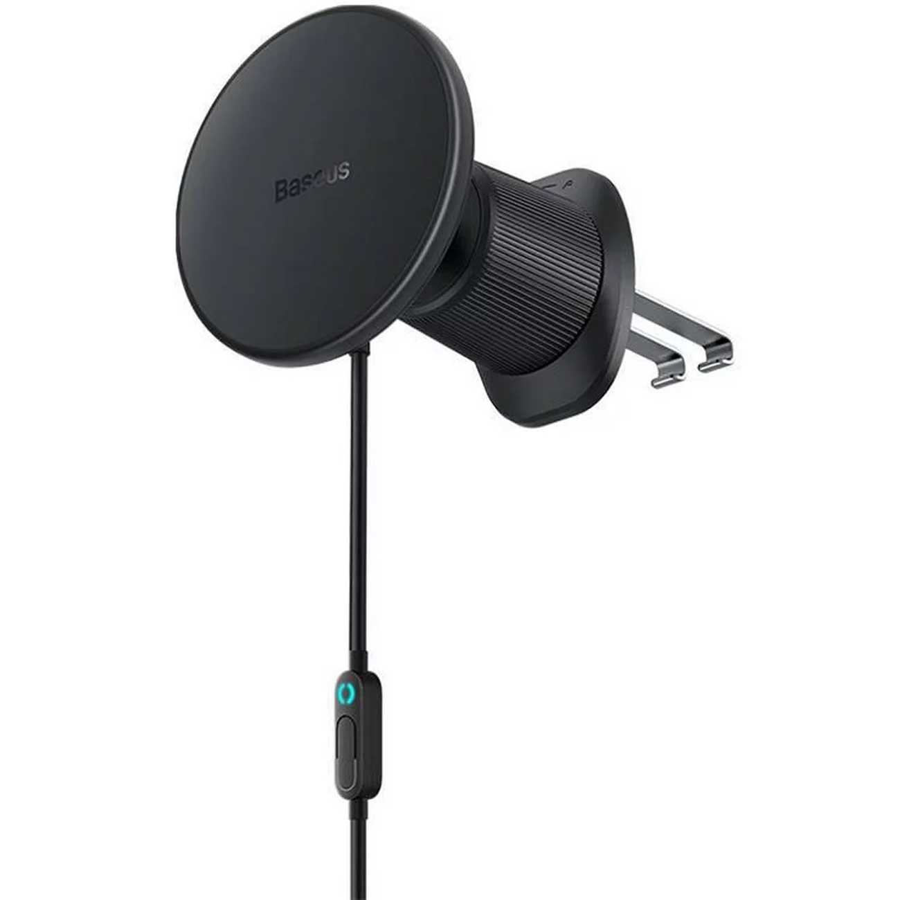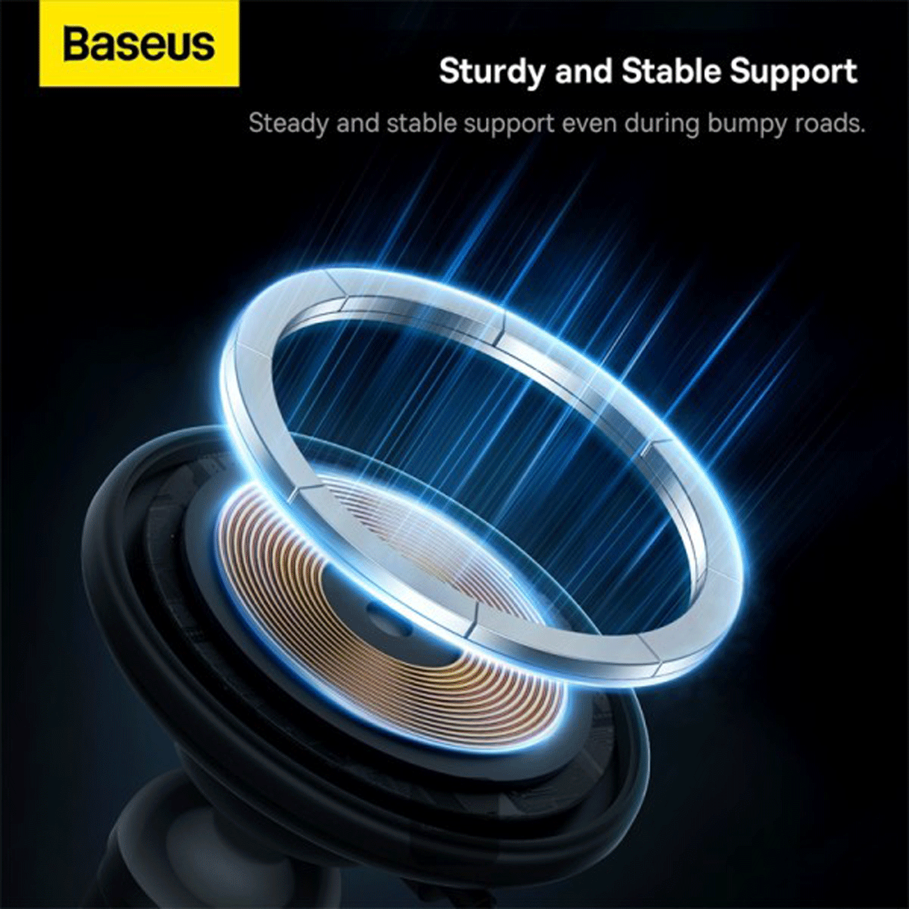شارژر فندکی بیسوس دارای یک هولدر موبایل نیز هست که به وسیله ی گیره به دریچه کولر متصل میشود و در جاده های ناهموار به وسیله آهنربای قوی از افتادن گوشی موبایل شما جلوگیری میکند. همانطور که قبلا نیز گفته شده این هولدر به شارژ وایرلس نیز مجهز است و به راحتی گوشی های 12-14 آیفون را با توان 15 وات شارژ میکند و به وسیله یک کلید که روی کابل تعبیه شده میتوان آن را روشن و خاموش کرد.