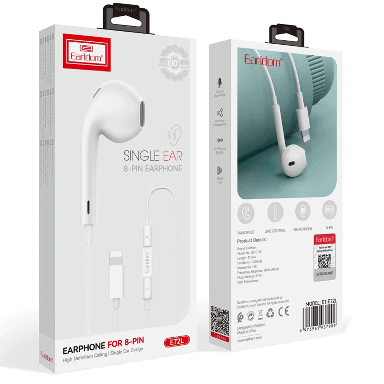 Earldom ET-E72L (one ear) in-ear headphones with microphone, Lightning connector