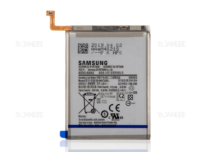 باتری لیتیوم یونی مدل EB-BN972ABU برای گوشی سامسونگ نوت 10 پلاس با ظرفیت اسمی 4300 میلی آمپر ساعت با ولتاژ 3.85 ولت است.
