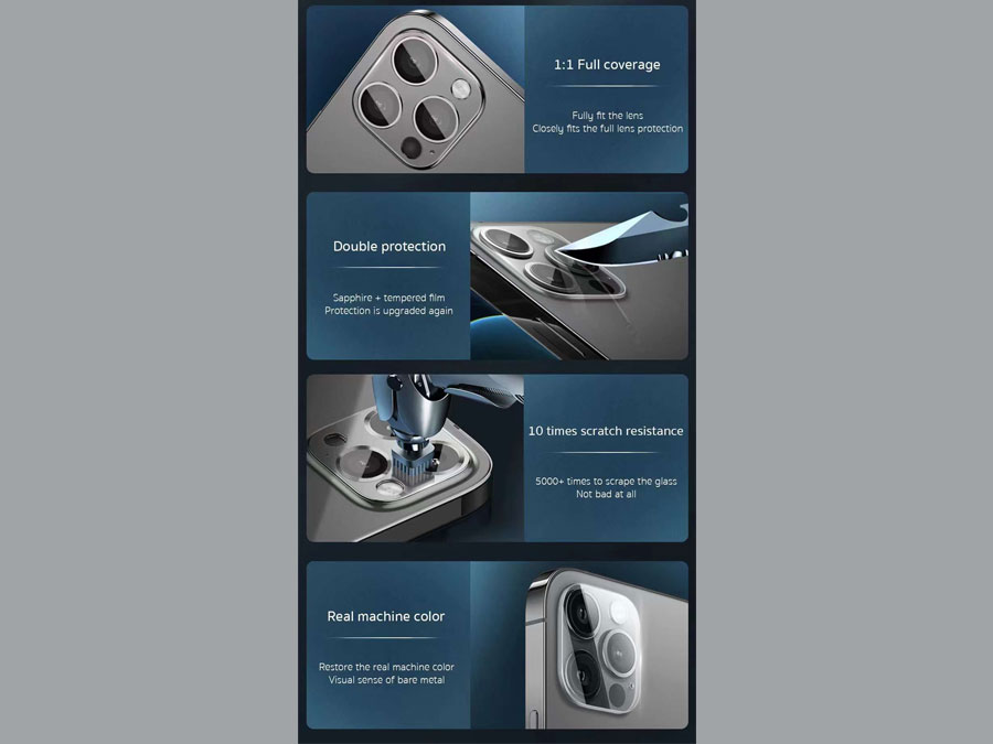 ساخته شده از آلیاژ آلومینیوم است و خیلی دقیق برش خورده است؛ طراحی آن کاملا متناسب با لنز دوربین است و در برابر خراش بسیار مقاوم عمل میکند. شفاف است و ظرافتی که در طراحی آن وجود دارد افتی در کیفیت تصاویر ایجاد نخواهد کرد و به صورت کامل لنز دوربین را پوشش میدهد.