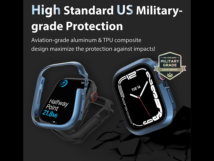 این لوازم جانبی اپل واچ لبههایی از آلیاژ آلومینیوم دارد و مواد بسیار منعطف و بادوام TPU بقیه قسمتها را تشکیل داده؛ قاب اپل واچ سری 7 ویوو طراحی ظریف و دقیقی دارد؛ نصب آن راحت است وبه خوبی اطراف اسمارت واچ را کاور میکند. برشهای دقیقی دارد و مانع استفاده از شارژر، میکروفون، اسپیکر یا کلیدها نخواهد بود.