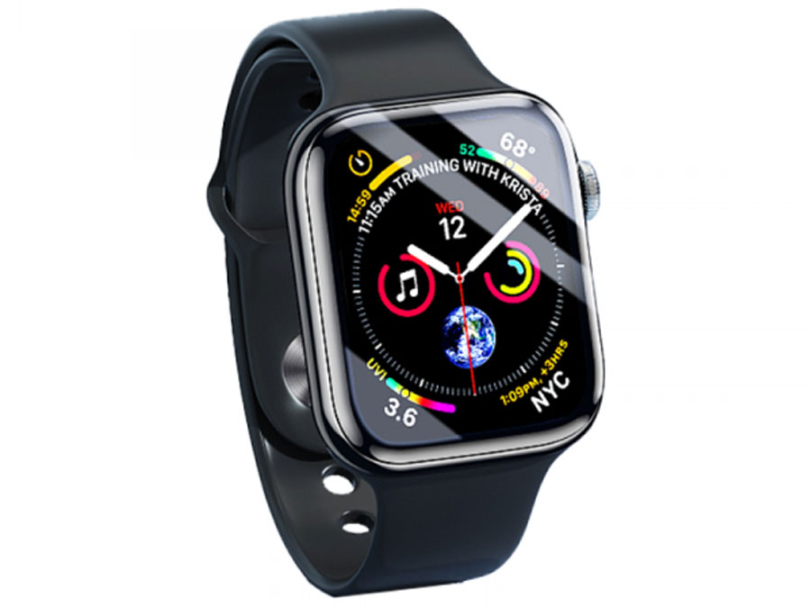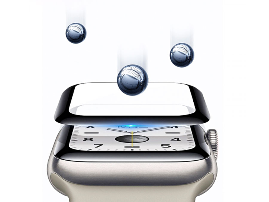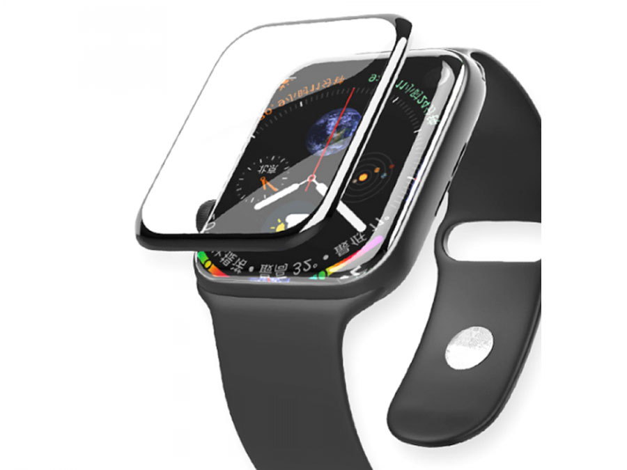 این لوازم جانبی اپل واچ از جنس شیشه سکوریت بوده و از سختی 6H برخوردار است تا در صورت وارد شدن ضربه خورد نشود. به صورت کامل صفحه نمایش را پوشش میدهد و لبههای خمیدهای دارد و حاشیه مشکی رنگ اطراف آن را پوشانده است.