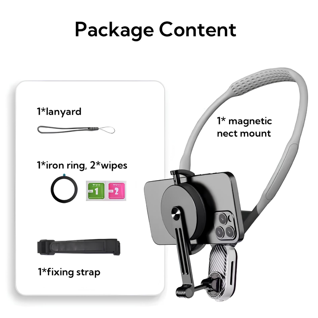 | سایر قابلیت ها | - مغناطیس قوی برای نگهداری ایمن گوشی - طراحی ارگونومیک و نرم برای راحتی بیشتر - قابلیت چرخش 360 درجه برای تنظیم زاویه دلخواه - ساختار مقاوم و پایدار - طراحی تاشو و قابل حمل - مناسب برای فعالیتهای ورزشی و عکاسی - راحتی در استفاده طولانیمدت - کاهش فشار و شوک به گردن - مناسب برای ورزش و فعالیتهای روزمره - قابلیت استفاده به عنوان هولدر دوربین و گوشی - ثبات در فیلمبرداری چه در حالت ایستاده و چه در حال حرکت - مناسب برای ضبط زوایای مختلف - نصب سریع و آسان |