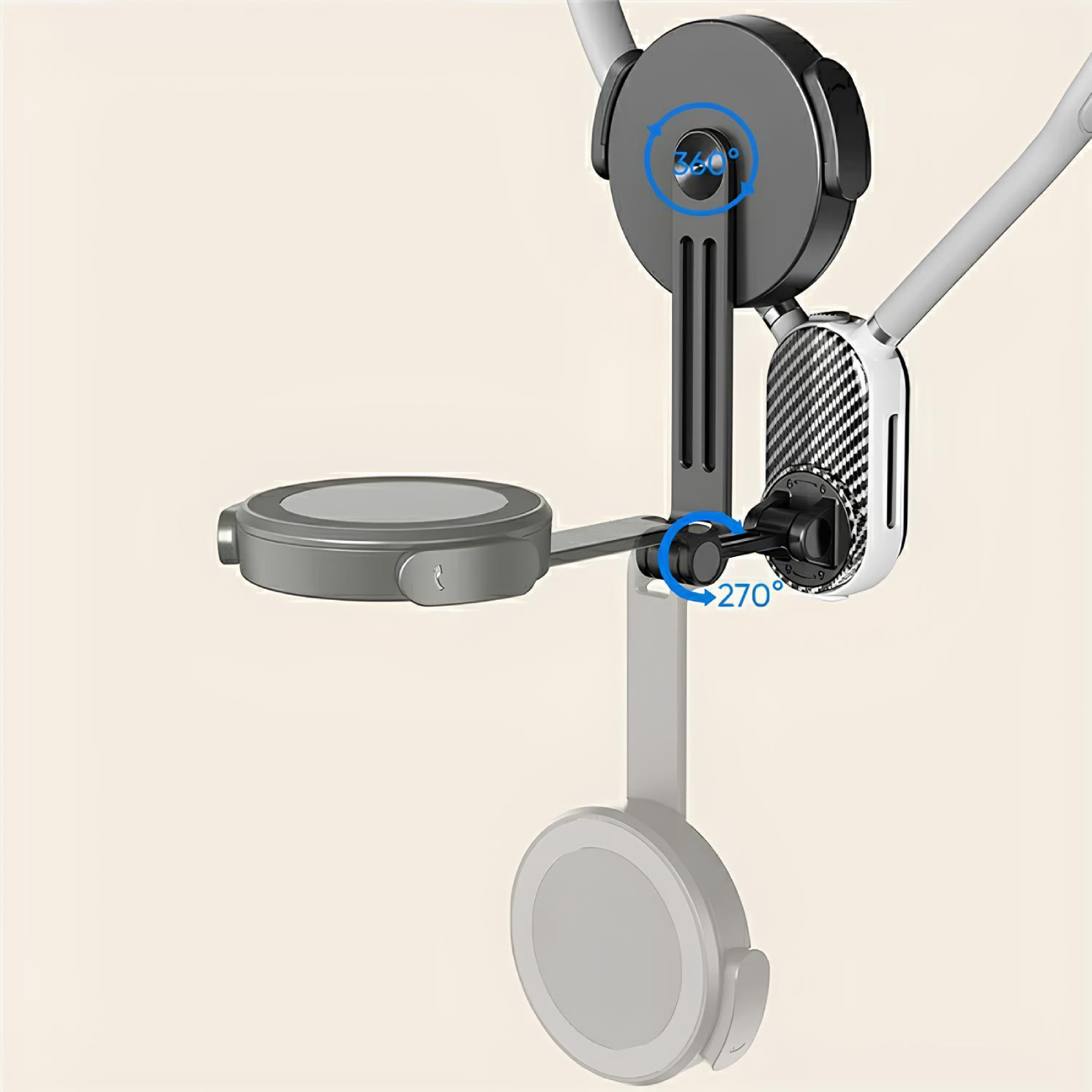 2. چرخش 360 درجه: قابلیت تنظیم زاویه در هر جهت برای راحتی بیشتر در استفاده.