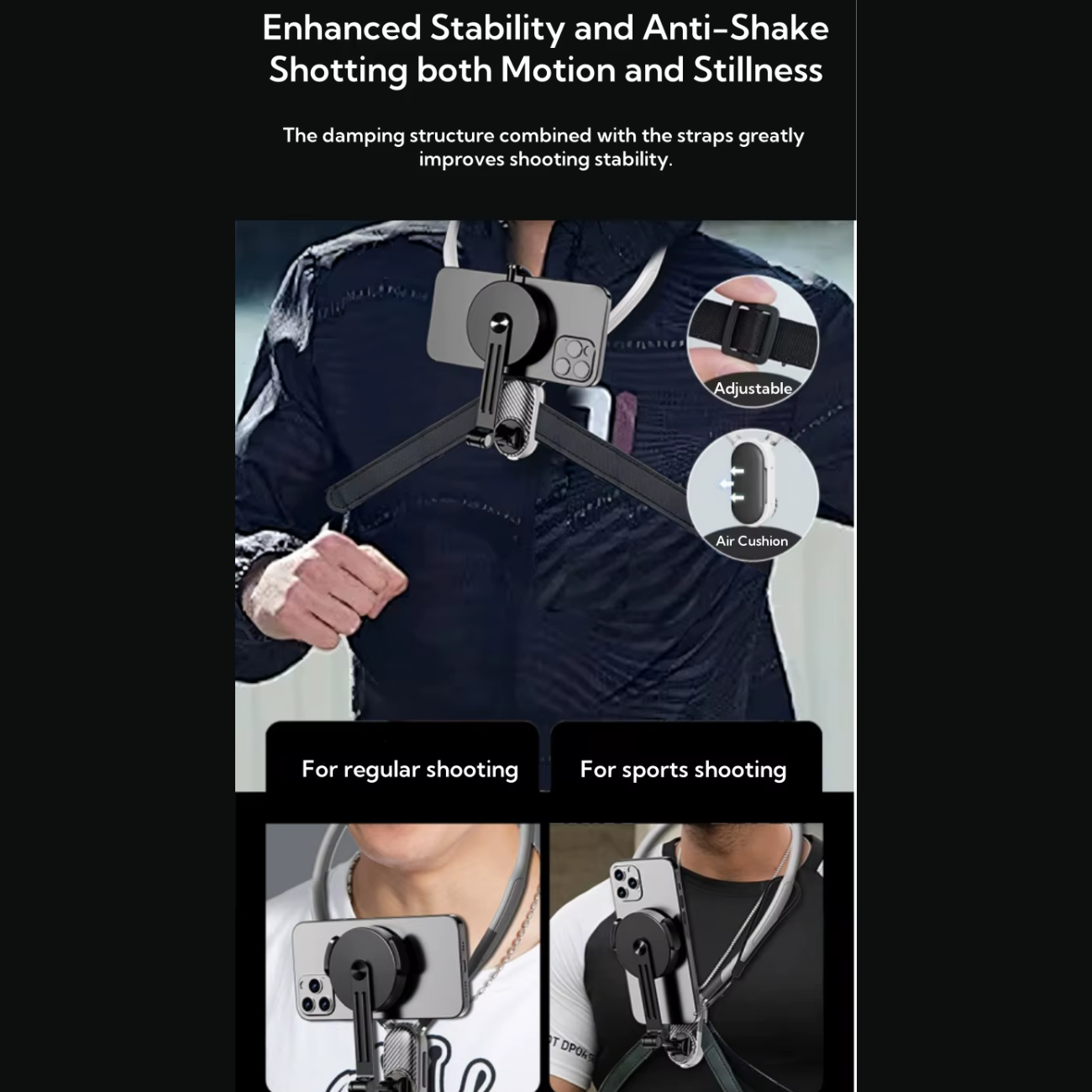مونوپاد گردنی مگنتی مدل SCS-NH001 با طراحی منحصر به فرد خود، تجربهای بینظیر در ثبت تصاویر و فیلمبرداری در حین فعالیتهای ورزشی ارائه میدهد. این دستگاه با بندهای تقویتشده و کمربند ایمنی، علاوه بر ثبات در شرایط ثابت، قابلیت ثبت تصاویر پایدار در حین دویدن، پرش و دوچرخهسواری را نیز دارد. طراحی قابل تنظیم بندها، این اطمینان را به شما میدهد که در هر سناریوی ورزشی، دستگاه بهخوبی بر سر جای خود محفوظ خواهد ماند.