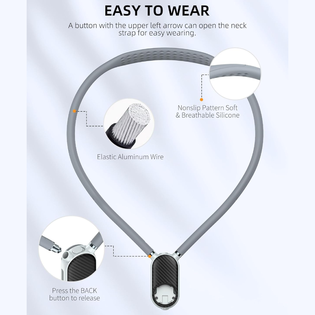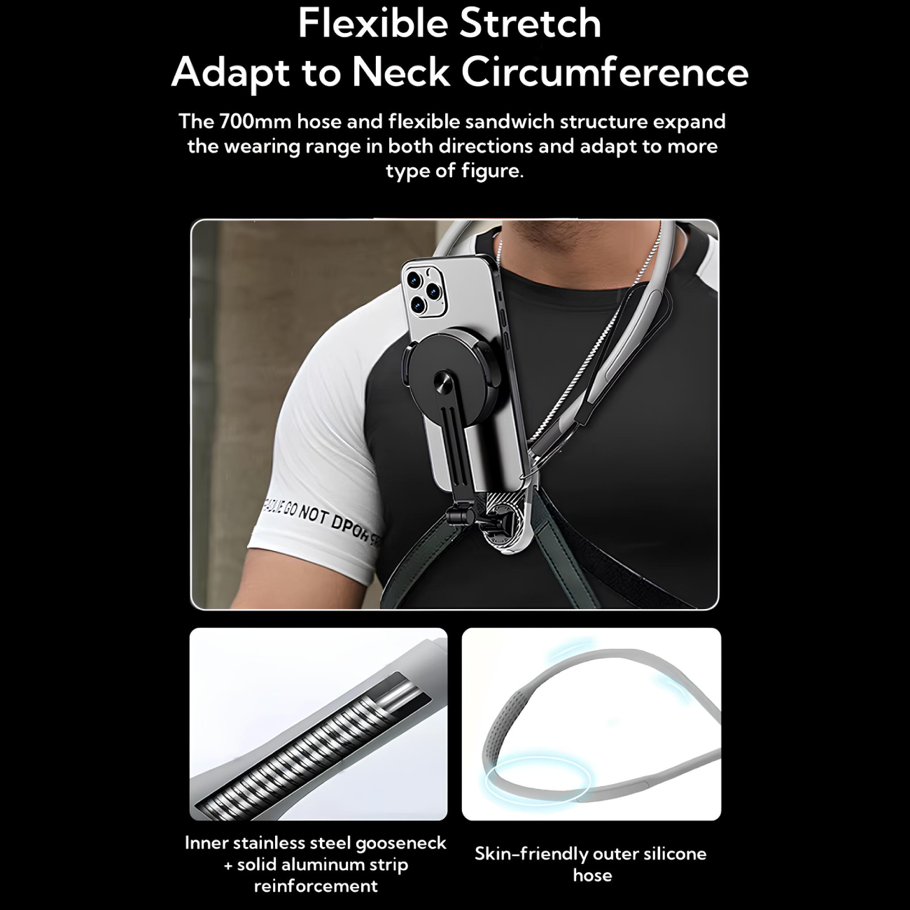 پایه گردنی موبایل SCS-NH001 با طراحی ارگونومیک و نرم خود، به راحتی بر روی گردن قرار میگیرد و احساس راحتی را برای کاربر به ارمغان میآورد. مواد استفاده شده در ساخت این هولدر موبایل، شامل سیلیکون و پلیکربنات است که علاوه بر سبکی، مقاومت بالایی نیز دارد. این طراحی به گونهای است که به طور طبیعی با فرم بدن سازگار میشود و فشار زیادی به گردن وارد نمیکند.