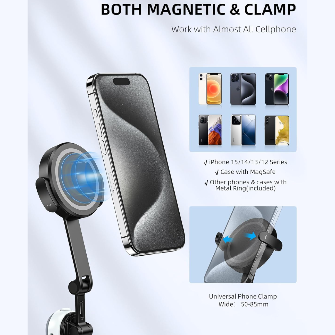 1. مغناطیس قوی و چسبندگی کامل: قدرت مغناطیسی بالا که گوشی را بهطور ایمن و محکم نگه میدارد.