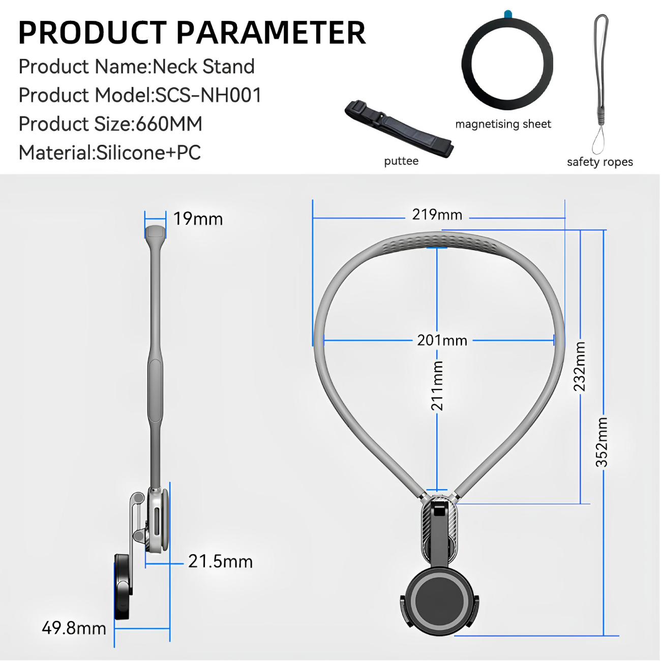 ویژگیهای اصلی هولدر گردنی تلفن همراه SCS-NH001 در یک نگاه: