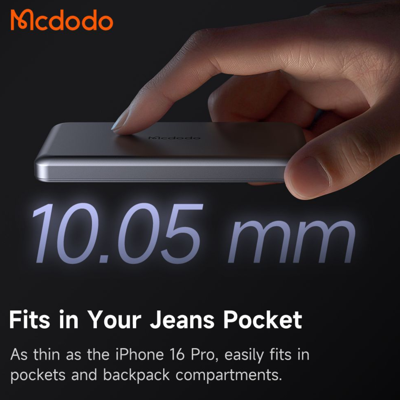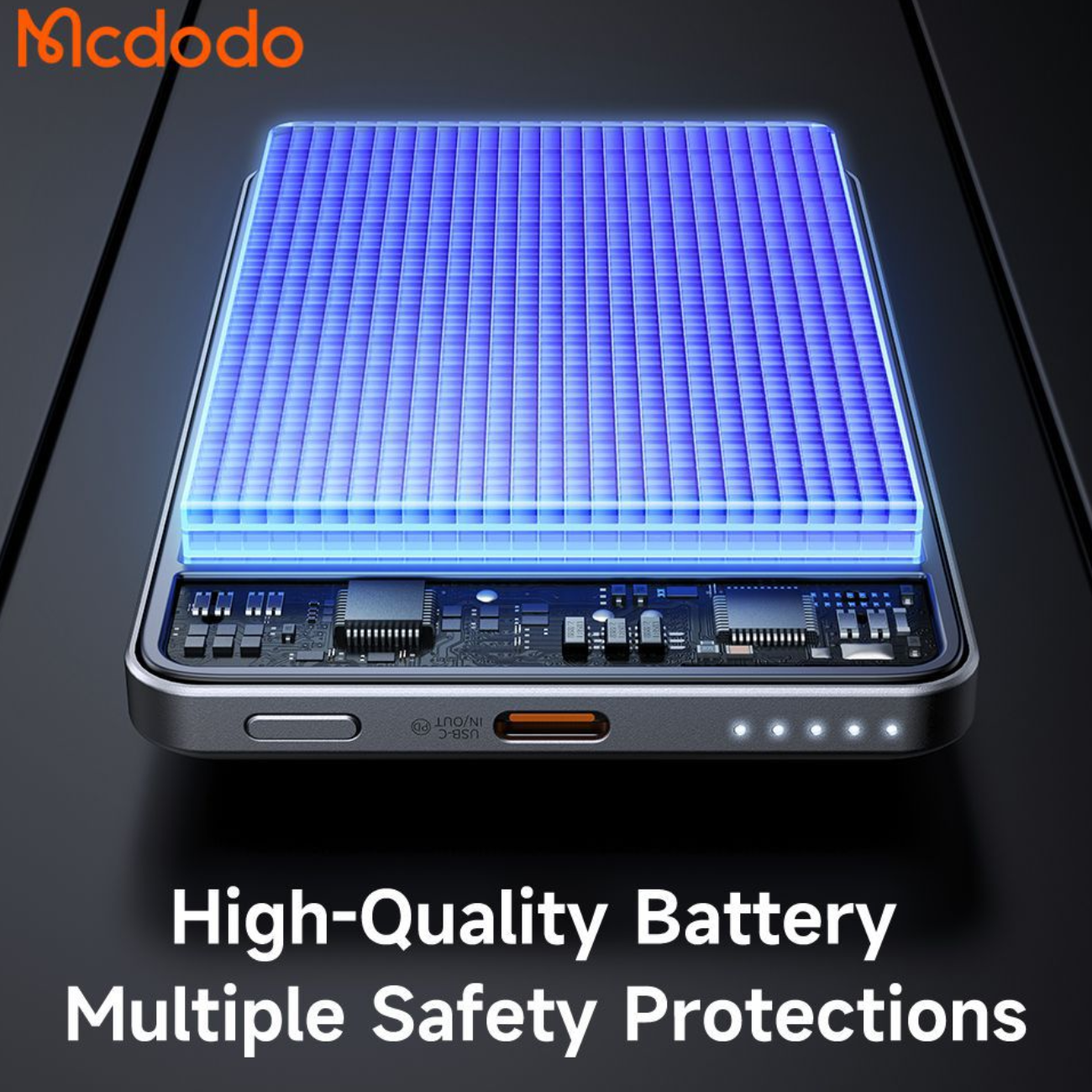 پاوربانک مگنتی مکدودو Mcdodo Metal Ultra-Thin Magnetic Wireless Power Bank با استفاده از بدنه آلومینیومی، احساس کیفیت بالایی را منتقل میکند و به طور مؤثری حرارت را به سرعت و به طور یکنواخت پخش مینماید. این ویژگی از گرما بیش از حد جلوگیری کرده و عملکرد بهینه دستگاه را تضمین میکند.
