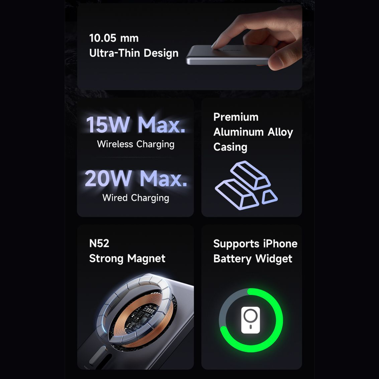 | امکانات و قابلیتها | - پاوربانک مغناطیسی، شارژ سریع - مکانیزم مغناطیسی، MagSafe - پشتیبانی از شارژ بی سیم 15 واتی و شارژ PD 20 واتی |