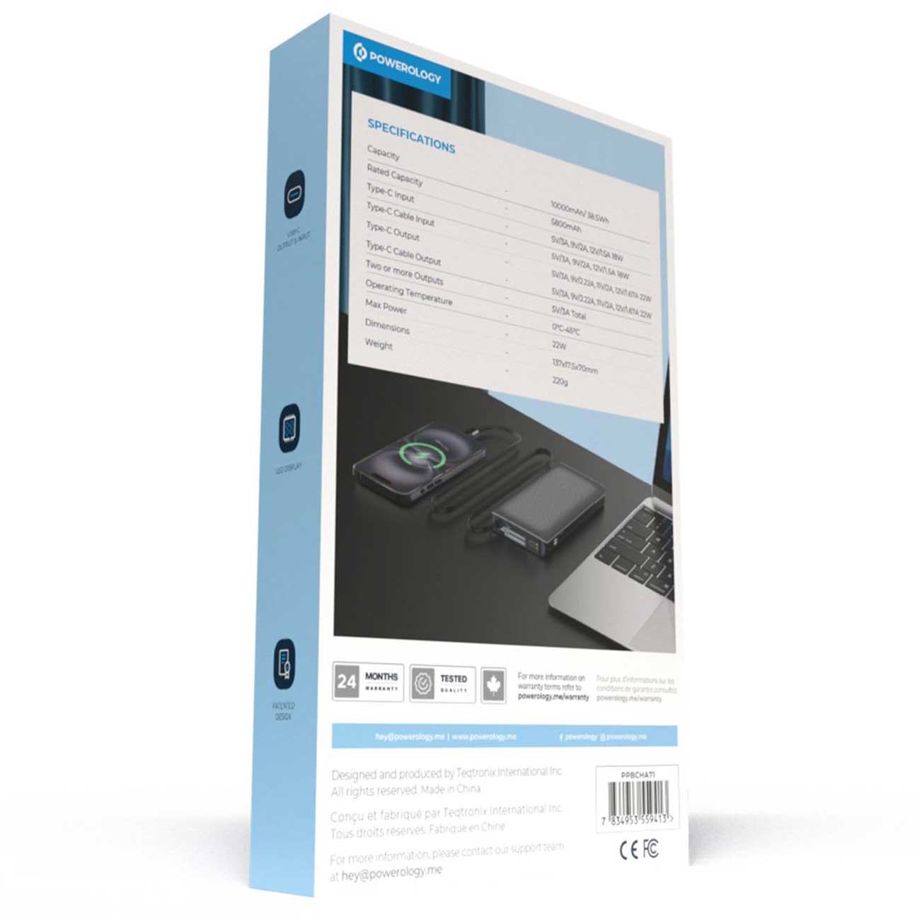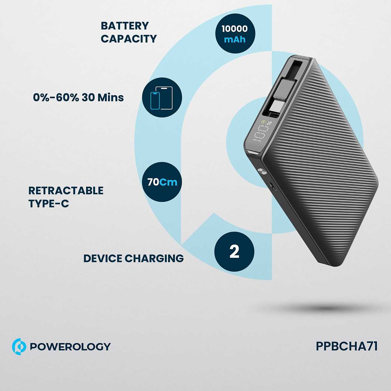 پاوربانک شارژ سریع تایپ سی 22 وات 10000 پاورولوژی PPBCHA71