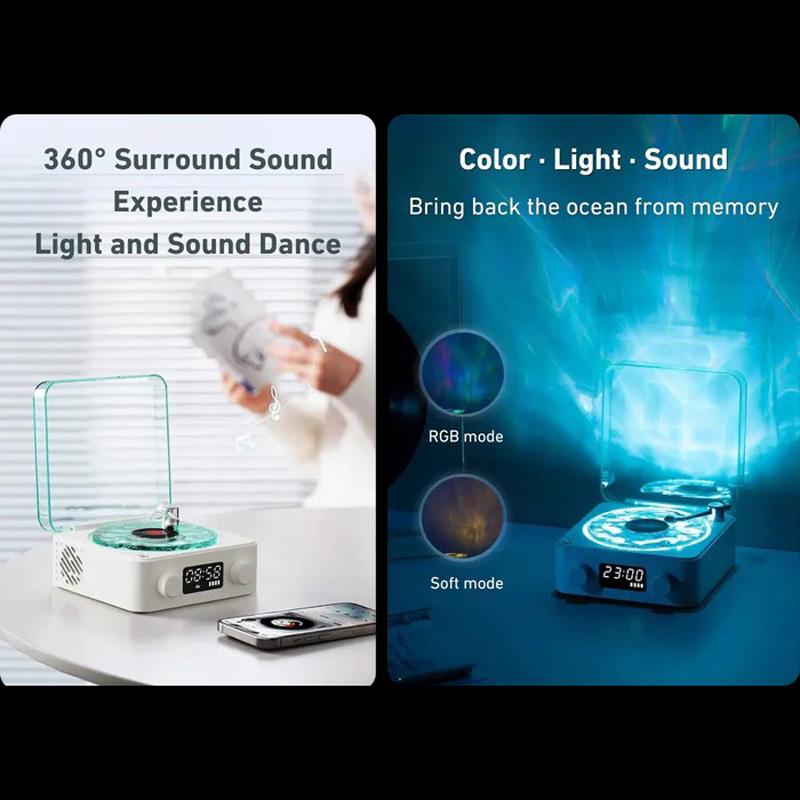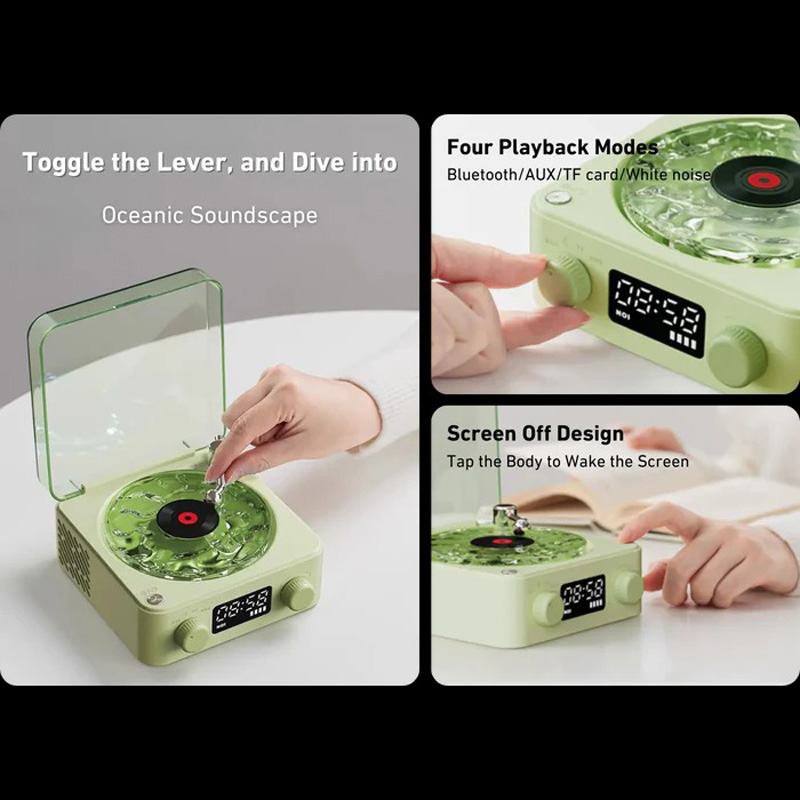 Waves KW03 فقط یک اسپیکر معمولی نیست؛ بلکه یک تجربه صوتی و بصری غوطهورکننده است که شما را به اعماق اقیانوس میبرد. طراحی کلاسیک با تم گرامافون رترو، همراه با صفحه گردان شفاف و الگوی امواج آبی، جلوهای زیبا و آرامشبخش به فضا میبخشد. نورپردازی RGB پویا نیز حس و حال موسیقی را به محیط منتقل کرده و تجربهای متفاوت را ارائه میدهد.