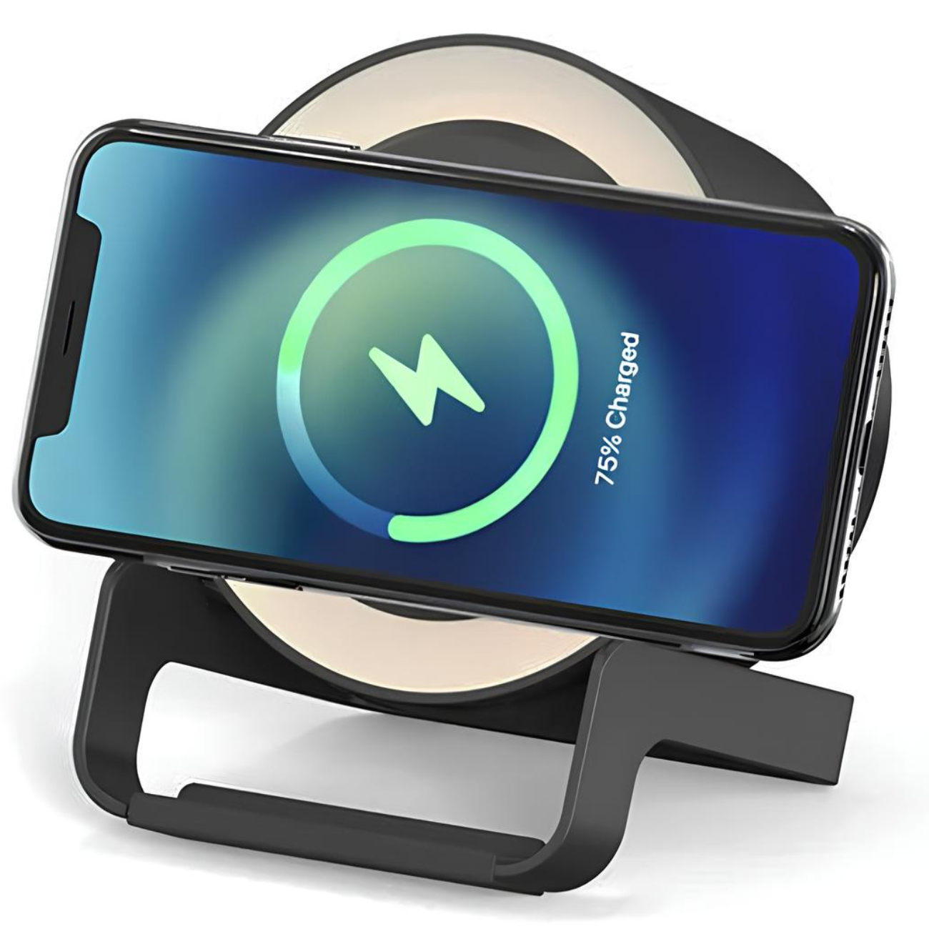 شارژر وایرلس 4در1 پرووان PSG40، دارای هولدر موبایل رومیزی است. این ویژگی به شما این امکان را میدهد که گوشی خود را به صورت افقی و عمودی قرار دهید و از تماشای فیلم یا انجام مکالمات ویدئویی لذت ببرید. با این قابلیت، دیگر نیازی به خرید یک پایه نگهدارنده جداگانه نخواهید داشت و میتوانید به راحتی از این دستگاه در هر مکانی استفاده کنید.