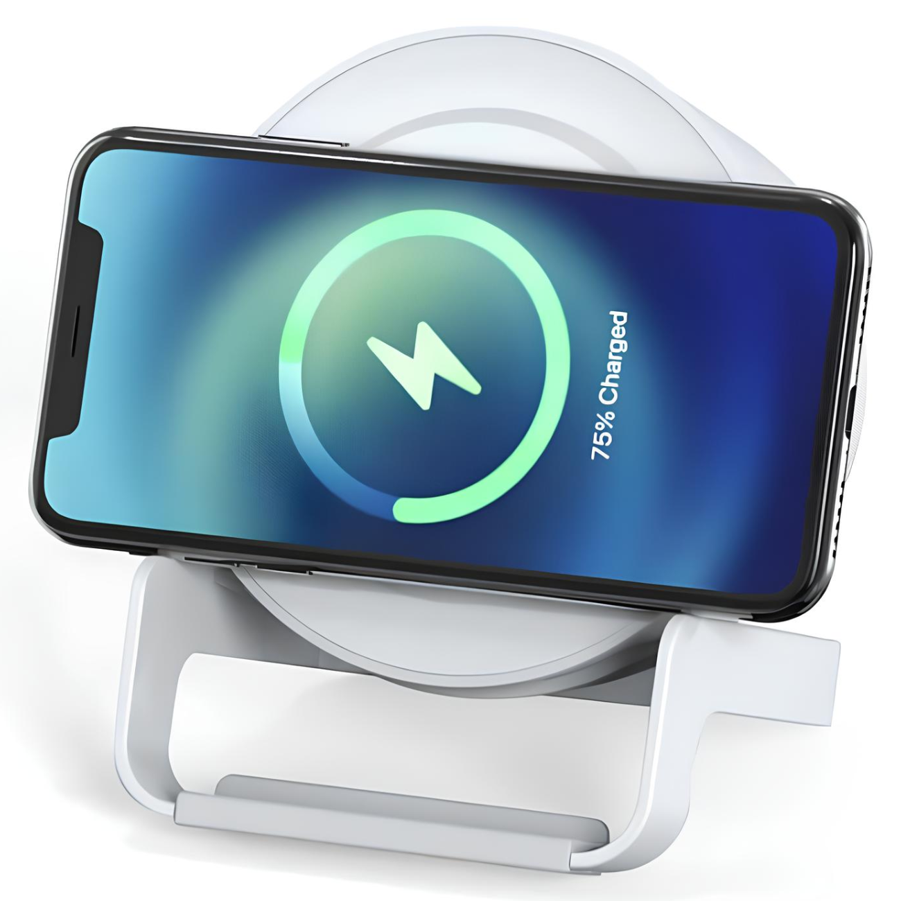 استند شارژ اسپیکرشو پرووان، دارای قابلیت شارژ بیسیم با حداکثر توان خروجی 15 وات است، این دستگاه میتواند گوشیهای موبایل هوشمند مجهز به فناوری Qi را به سرعت با توانهای 5، 7.5، 10 و 15 وات به راحتی شارژ کند. این ویژگی باعث میشود که دیگر نیازی به استفاده از کابلهای متعدد نداشته باشید و از آشفتگی ناشی از آنها جلوگیری کنید.