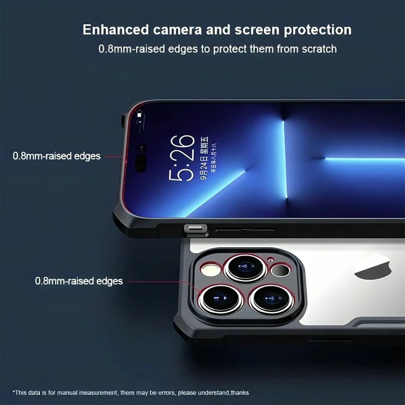 لبههای این لوازم جانبی گوشی آیفون 15 پرومکس در اطراف دوربین و صفحه نمایش دارای لبه 0.8 میلیمتری برای محافظت بیشتر از دوربین است. وجود این لبه برای جلوگیری از سایش بسیار موثر بوده است. بنابراین با خیال راحت میتوانید گوشی خود را درون کیفتان در کنار دیگر وسایل قرار دهید.