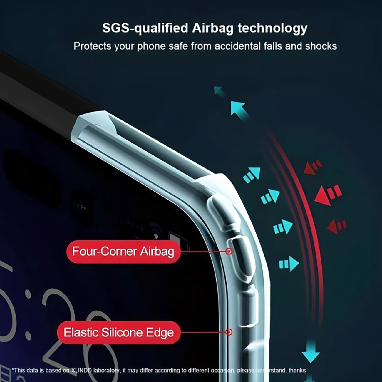 در چهار گوشه قاب محافظ گوشی آیفون 15 پرومکس یاندو Beatle از ایربگهای مقاوم و همچنین لبه سیلیکونی الاستیک استفاده شده که ضربه را به خوبی جذب میکند و مانع آسیب رسیدن به گوشی میشود.