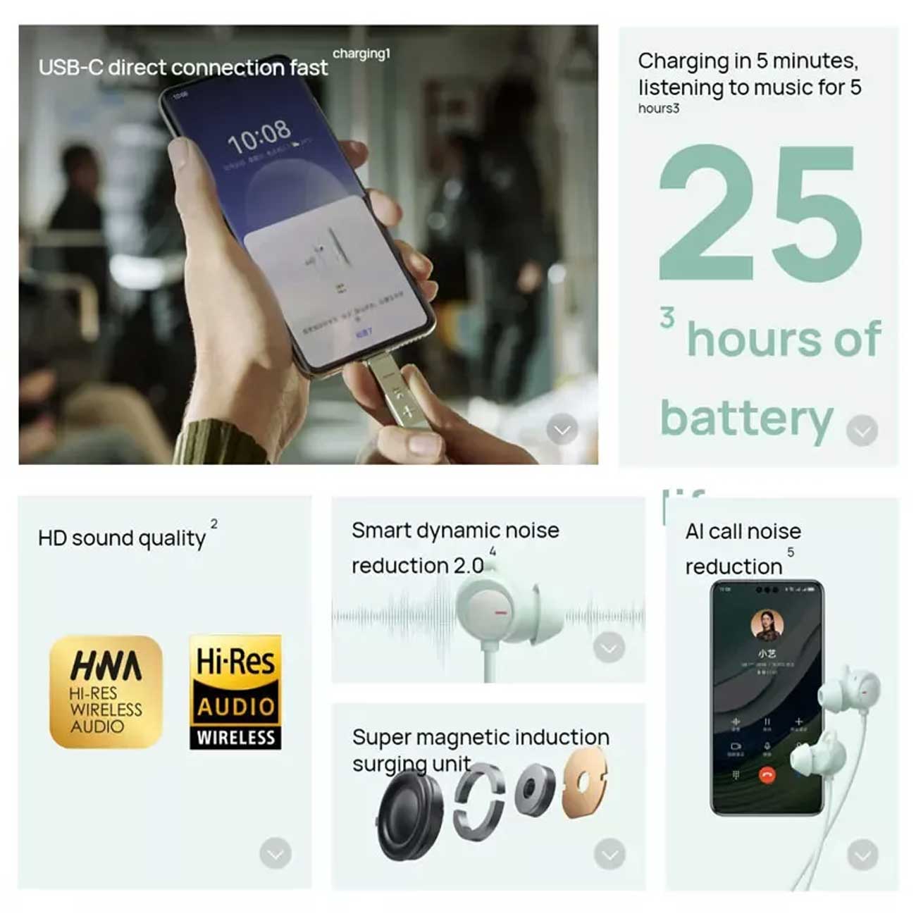 این ویژگیها مجموعاً باعث میشوند که HUAWEI FreeLace Pro 2 یکی از بهترین انتخابها برای کسانی باشد که به دنبال کیفیت صدای عالی در هندزفریهای بیسیم هستند. چه در حال گوش دادن به موسیقی با وضوح بالا باشید و چه در حال انجام تماسهای صوتی، این هندزفری قادر به ارائه تجربهی صوتی با جزئیات و شفافیت بسیار بالا است.