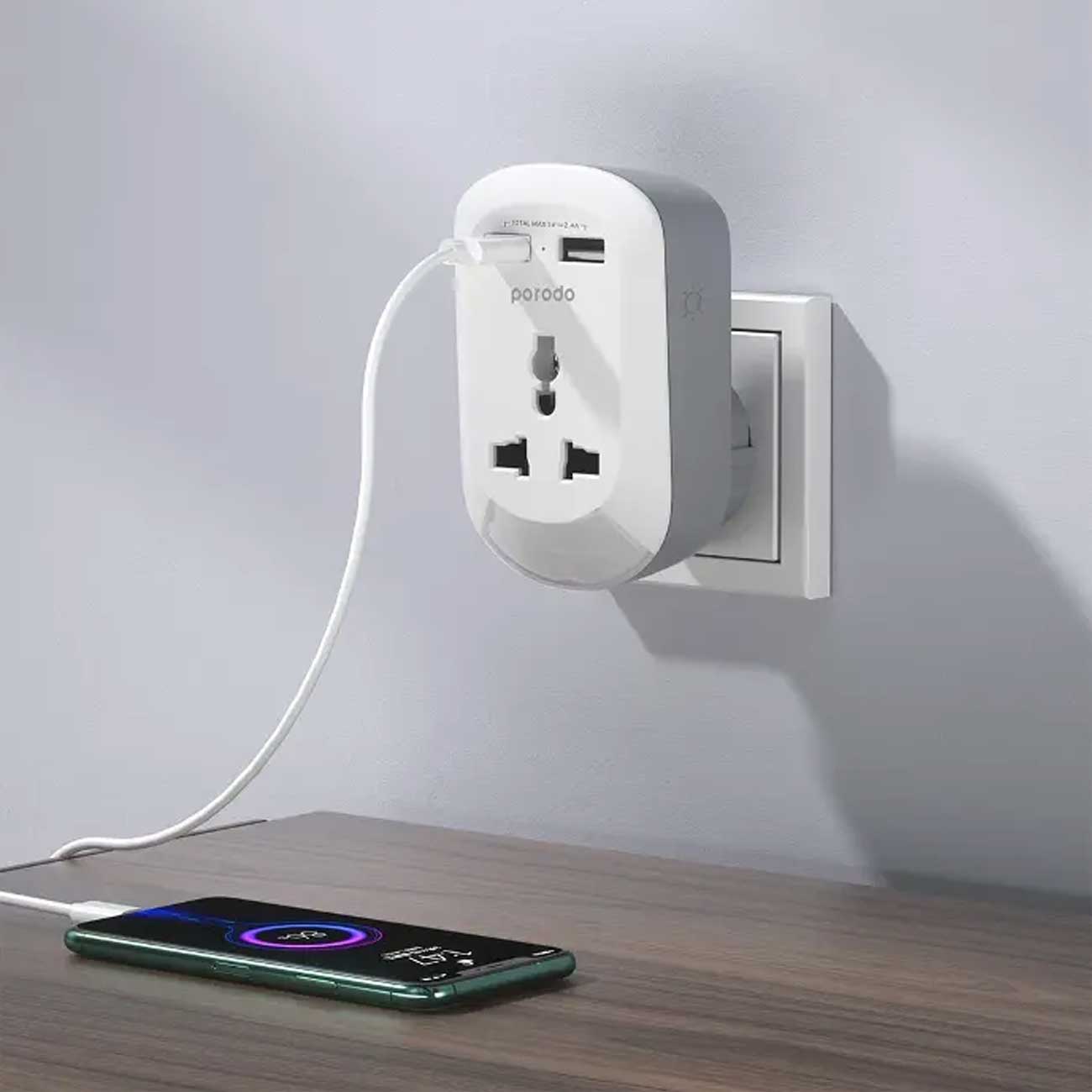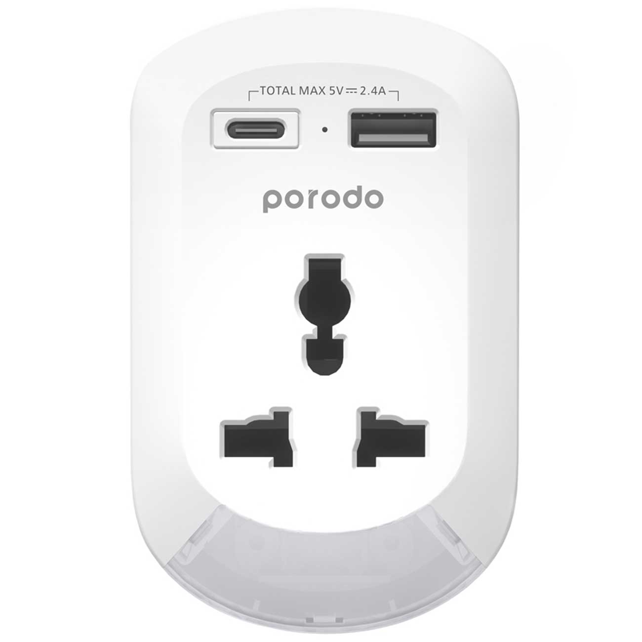 مبدل و چند راهی برق 2500 وات یک سوکت برق، یک تایپ سی، یک یواسبی پورودو PD-MSACEU-WH
