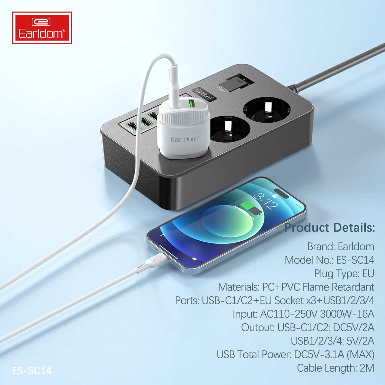 چند راهی 3 خانه برق ارلدام مدل ES-SC14 دارای ورودی AC 110-250V با قدرت 3000 وات و جریان 16 آمپر است که آن را برای استفاده با دستگاههای پرقدرت و برقی مختلف بسیار مناسب میسازد. این ویژگی به شما این امکان را میدهد که از چند راهی به طور ایمن برای دستگاههای با توان بالا و در شرایط مختلف ولتاژ استفاده کنید.