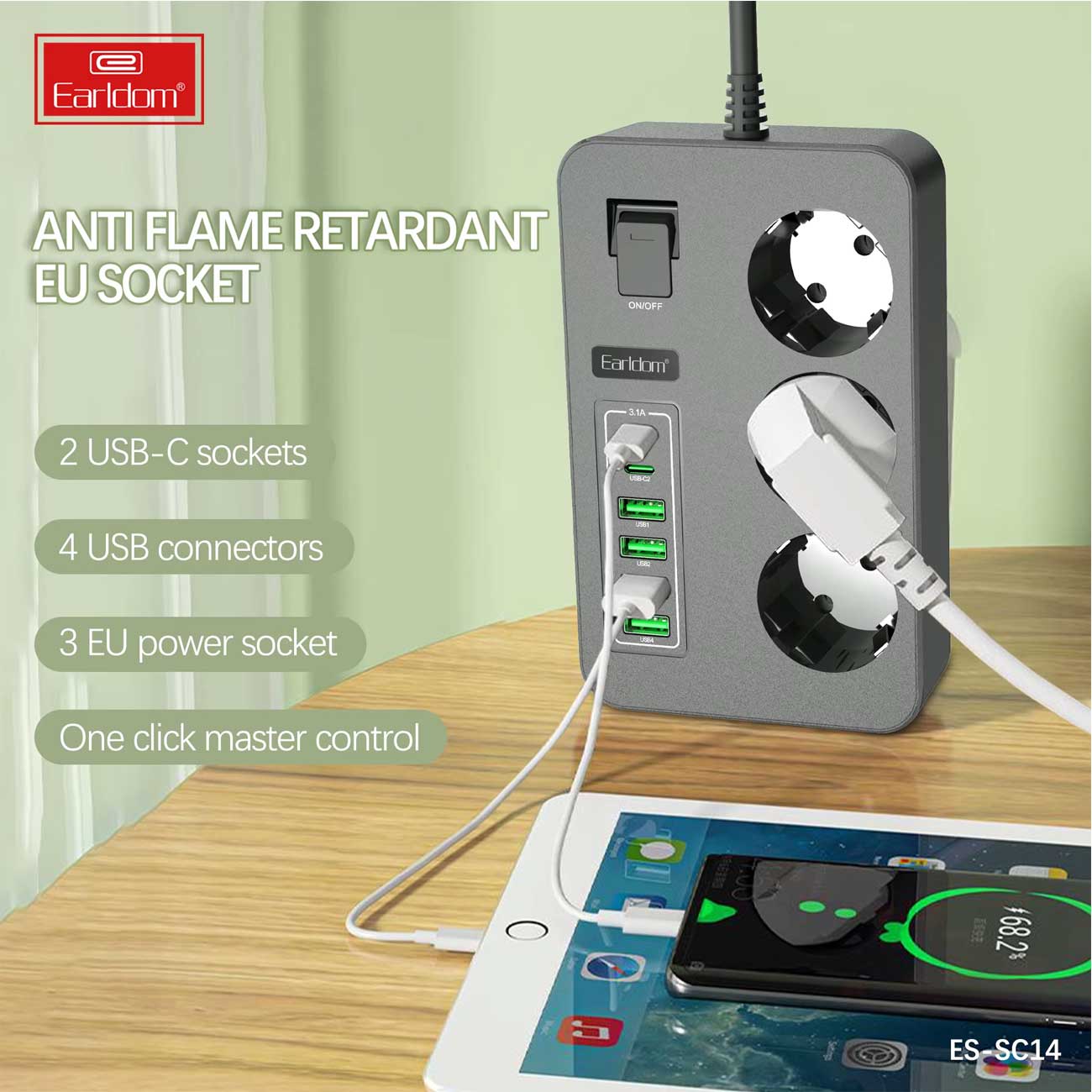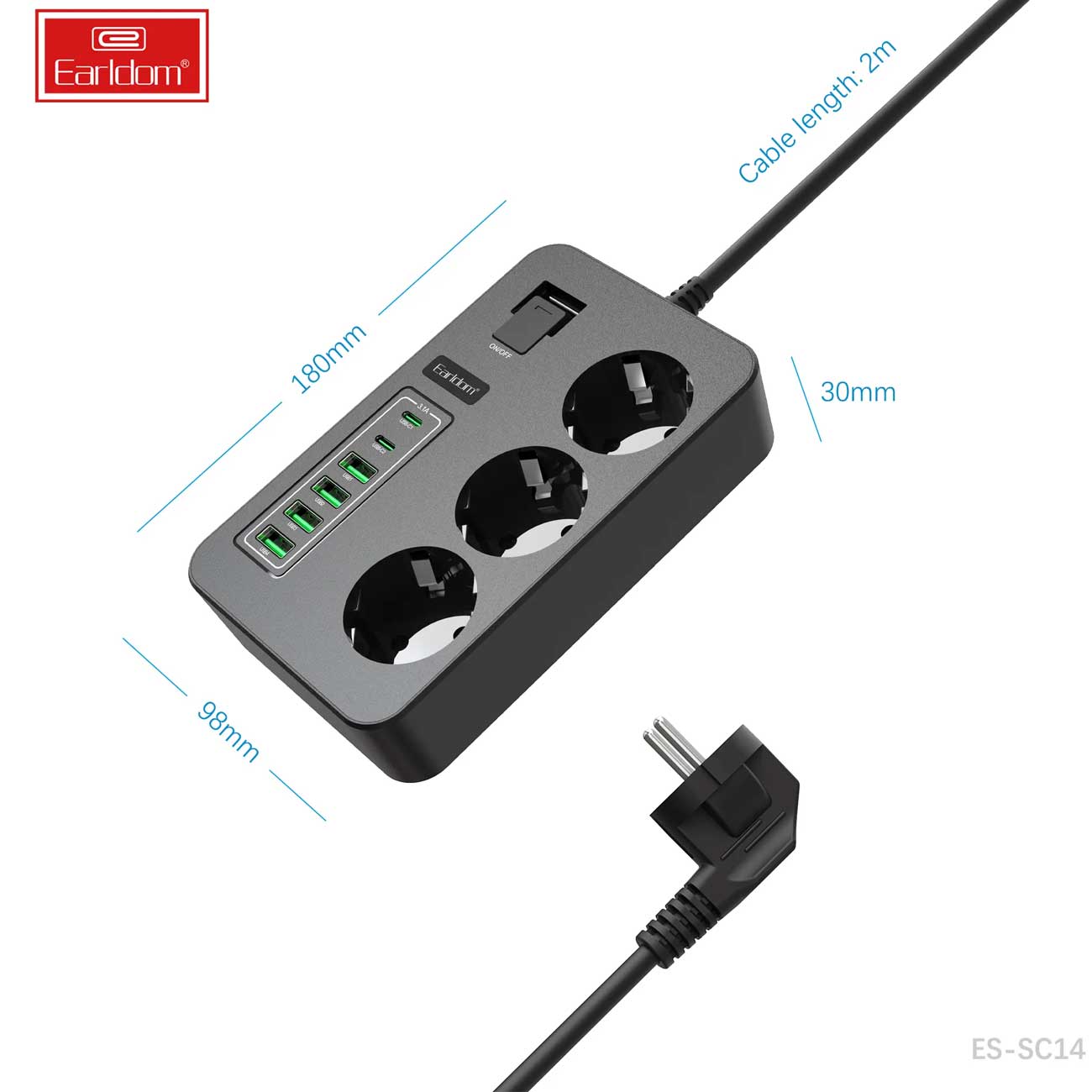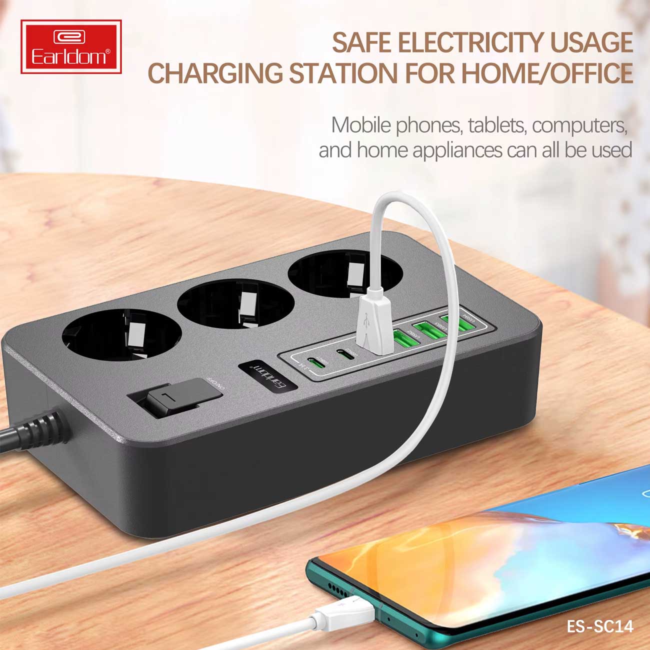 ارلدام یک چندراهی برق با سه سوکت و شش درگاه یواسبی را طراحی کرده و شما به راحتی میتوانید انواع دستگاههای برقی از کامپیوتر و لپتاپ گرفته تا دستگاههای کوچک شارژی مانند گوشیهمراه، تبلت، پنکه دستی و ... را تامین انرژی کنید؛ این سیمسیار با کد ES-SC14 روانه بازار شده و به راحتی میتواند 9 دستگاه شما را به صورت همزمان برقرسانی کند.