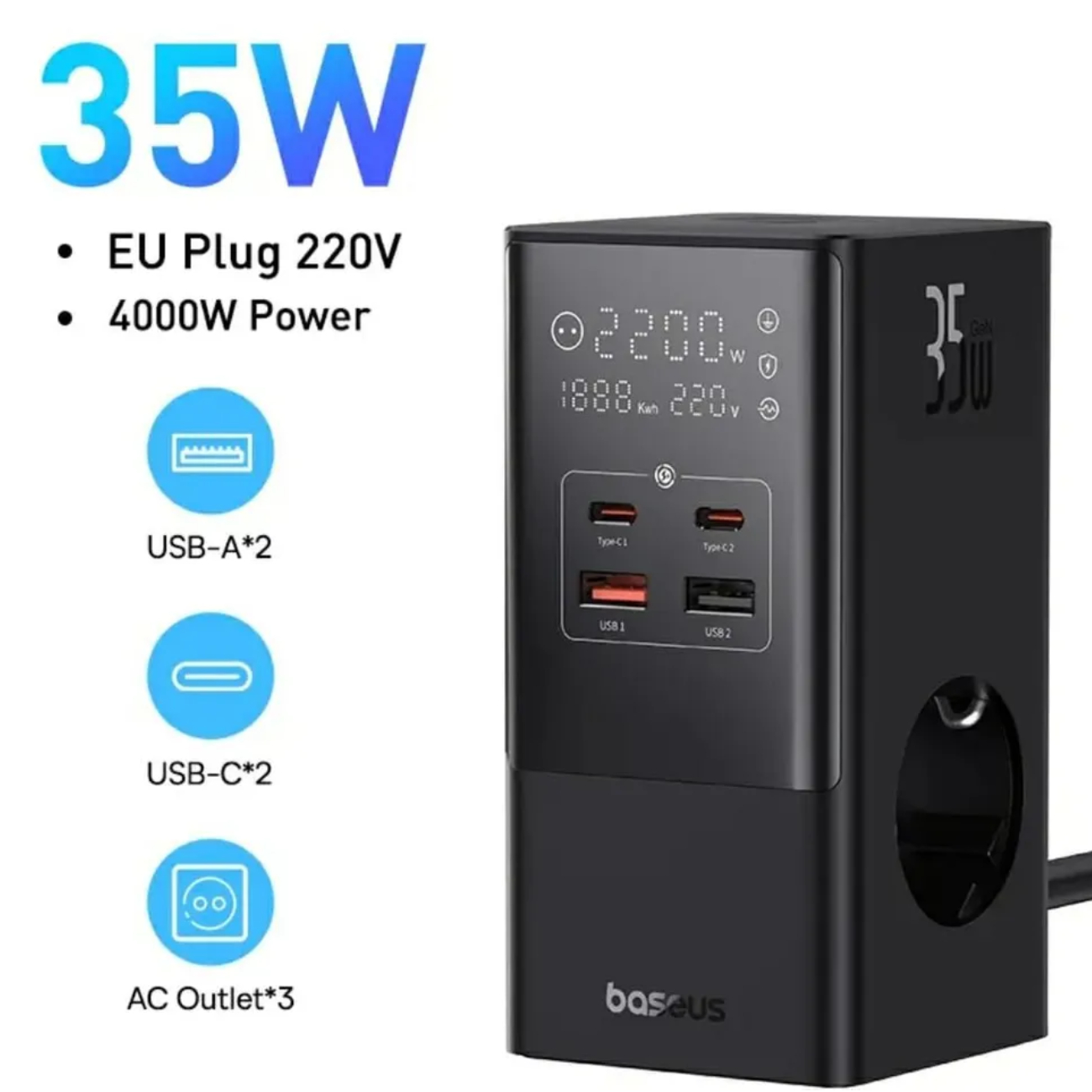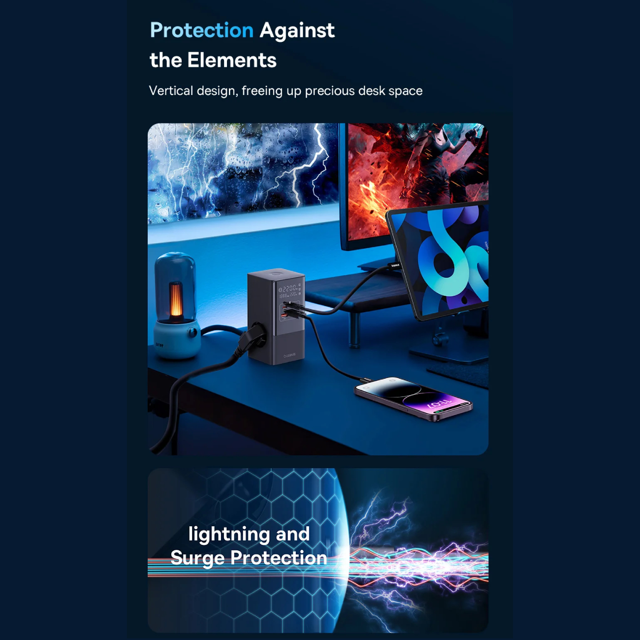 با طراحی عمودی محافظ برق بیسوس مدل CCGAN35-S3ACE، امکان استفاده بهینه از فضای میز فراهم میشود. این ویژگی به شما کمک میکند تا از شلوغی و بینظمی دستگاههای شارژ شده جلوگیری کنید و محیطی منظم و مرتب داشته باشید. این مسئله برای افرادی که در خانه یا دفتر کار خود نیاز به یک محیط کار ساماندهی شده دارند، بسیار حائز اهمیت است.
