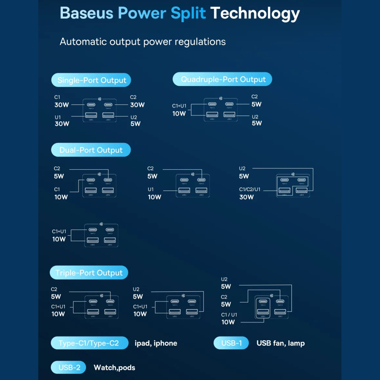 Type-C2+(Type-C1+USB1)+USB2 Output: 5W+10W+5W