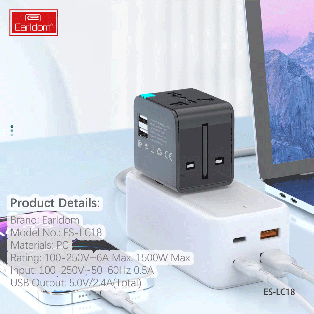 ارلدام برای آداپتور ES-LC18 دو پورت USB طراحی کرده؛ قابلیت شارژ همزمان چند دستگاه هم برایتان فراهم است و با قدرت 1500 وات قادر به شارژ باتری دستگاه شما خواهد بود. بنابراین به راحتی میتوانید گوشی و تبلتهای مختلف را شارژ کنید.